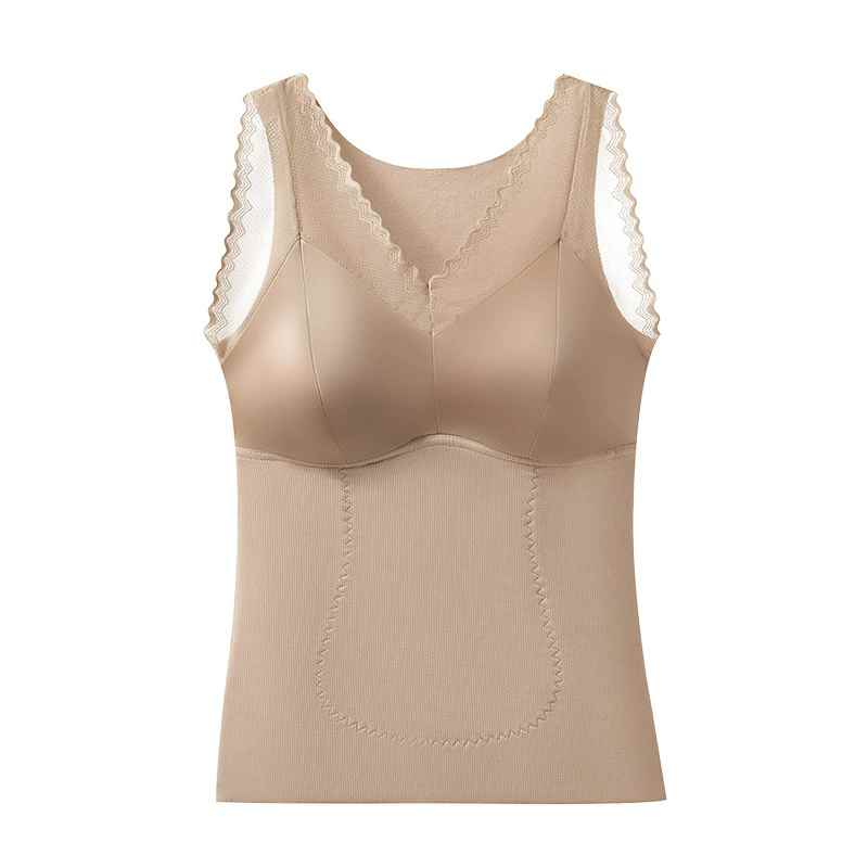 【輕奢緞面,朦朧蕾絲!限時特惠買一送一!每套均價僅499元!】羊絨蠶絲V領帶胸墊保暖背心