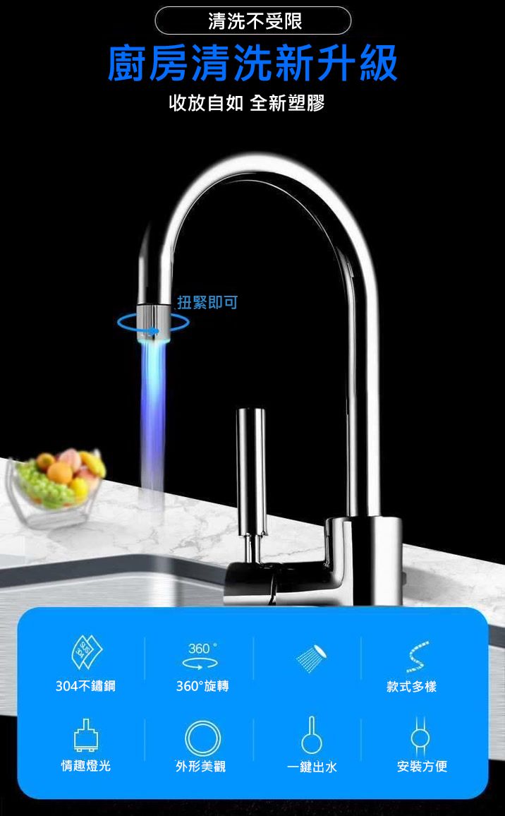 溫控發光變色水龍頭【買一送一】兩個水龍頭+兩個轉接頭