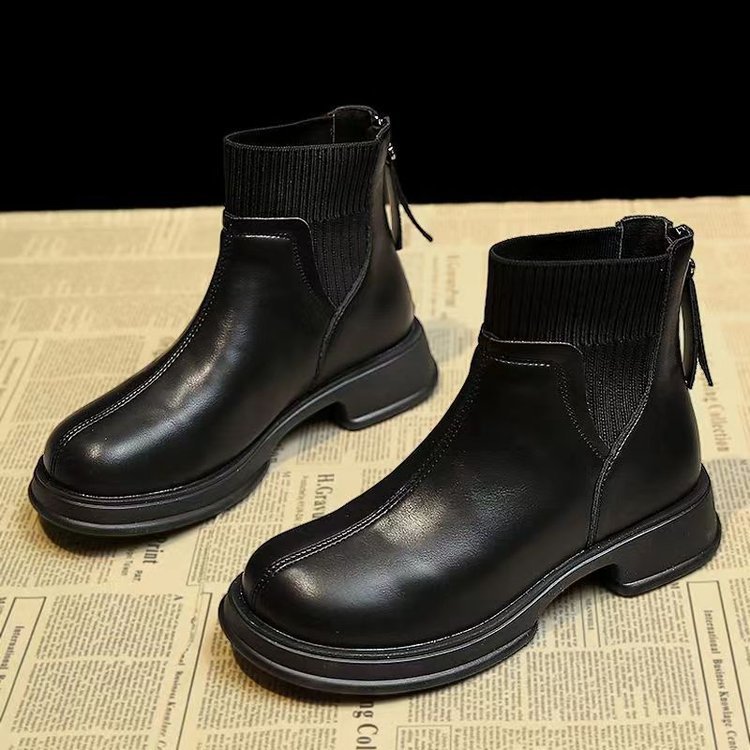 厚底後拉鏈秋冬洋氣女靴【黑色】一雙