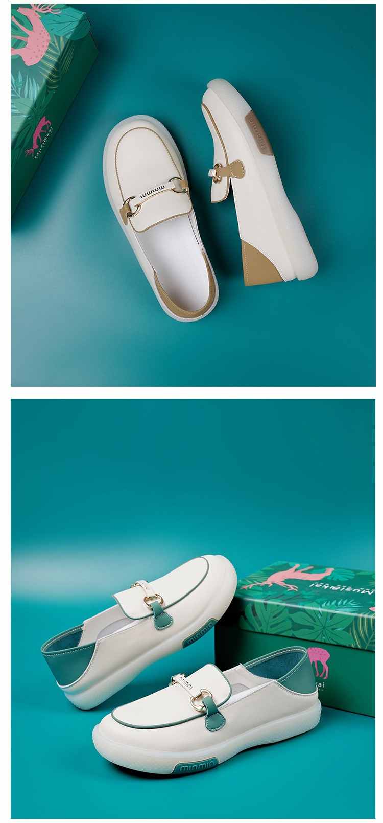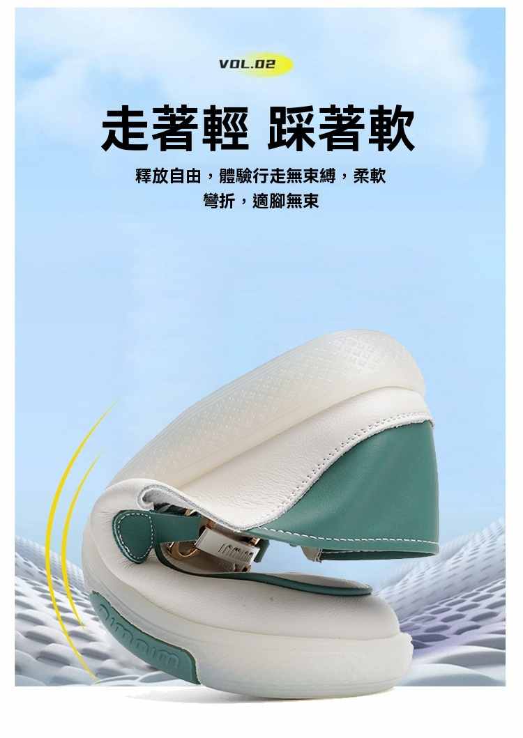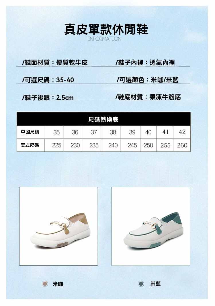 輕量設計柔韌軟彈一腳蹬女鞋【買一送一】【米咖色】+【米藍色】各一雙(到手兩雙,每雙均價549元!)