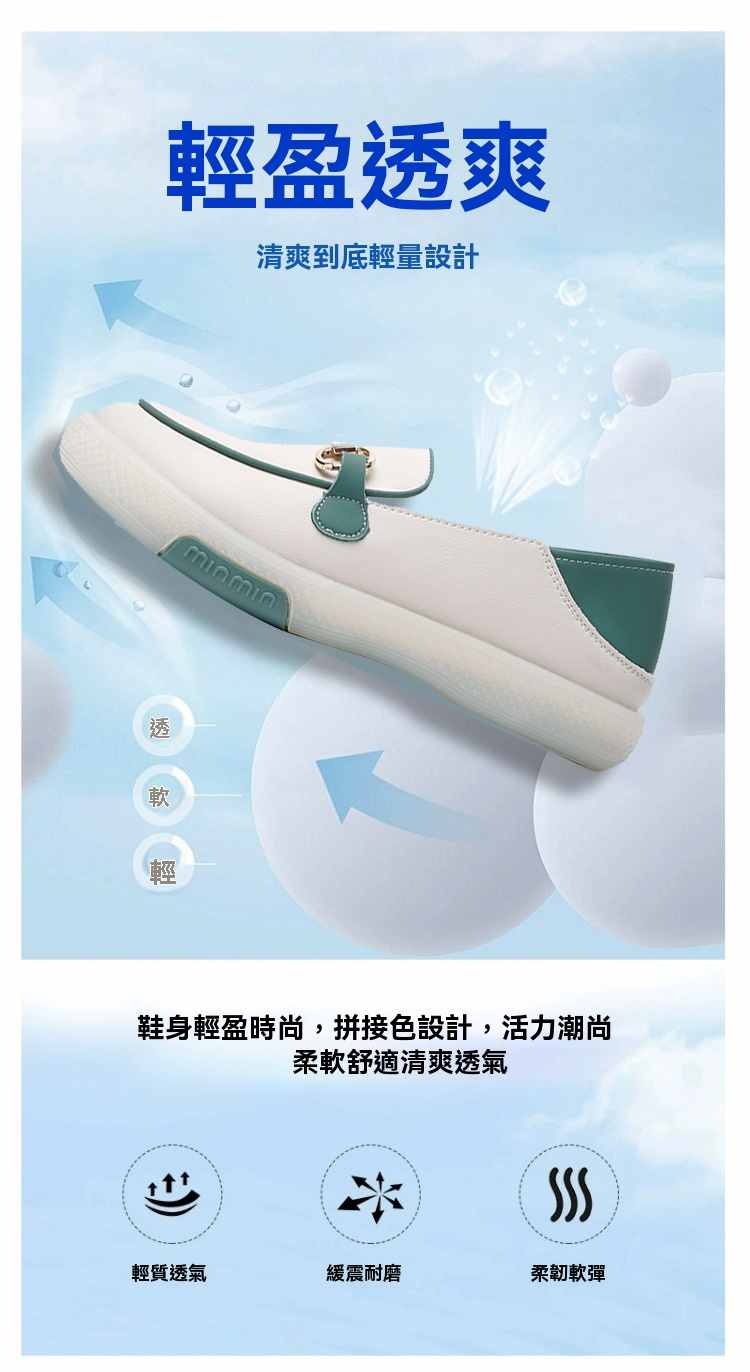 輕量設計柔韌軟彈一腳蹬女鞋【買一送一】【米藍色】2雙(到手兩雙,每雙均價549元!)