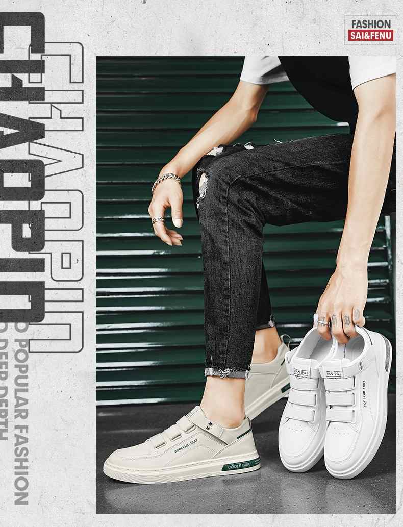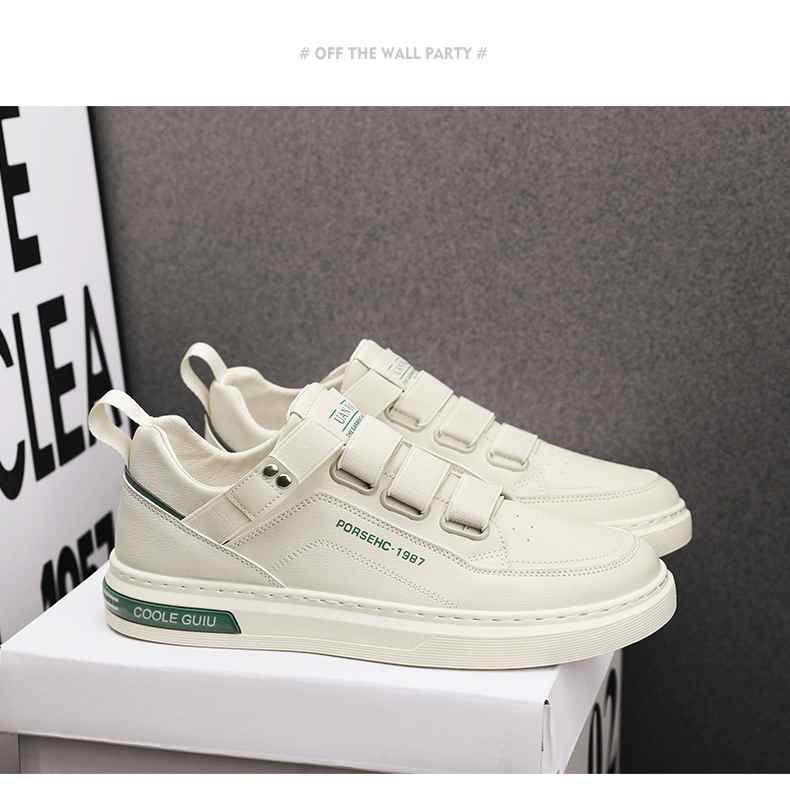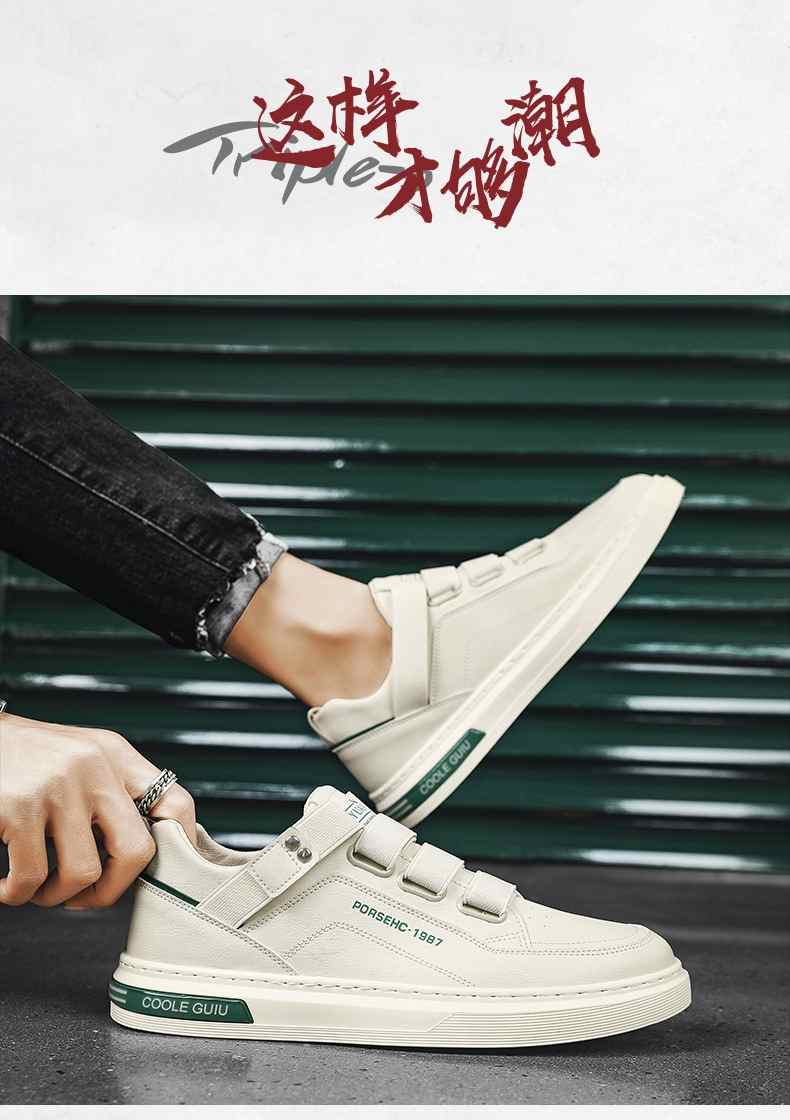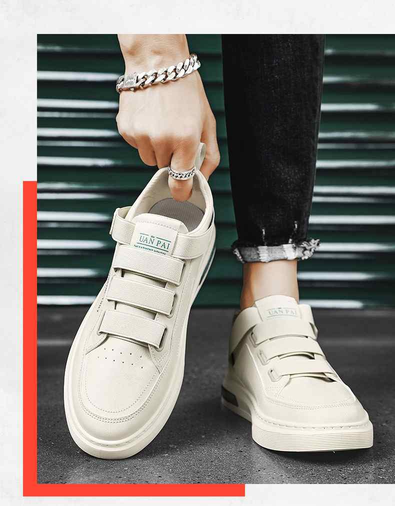 四季可穿無鞋帶皮革休閒男鞋【白色】+【米色】各一雙(到手2雙,每雙均價549元!)