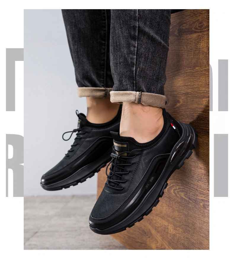 簡約流暢輕便舒適透氣皮面休閒鞋【買一送一】黑色+棕色各一雙(到手2雙,每雙均價549元!)