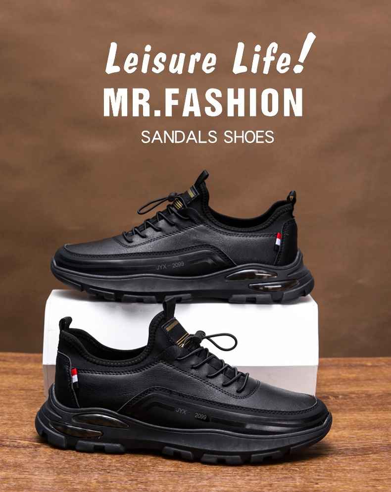 簡約流暢輕便舒適透氣皮面休閒鞋【買一送一】黑色2雙(到手2雙,每雙均價549元!)
