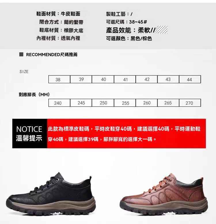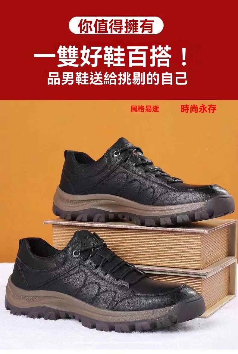韌性十足四季可穿皮面運動男鞋【買一送一】【棕色】+【黑色】各一雙(到手兩雙,每雙均價549元!)