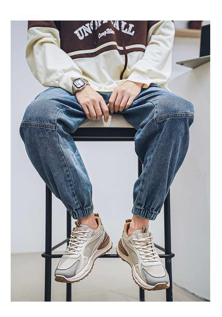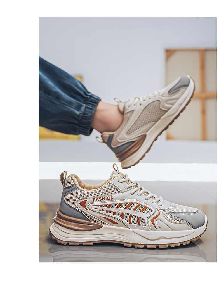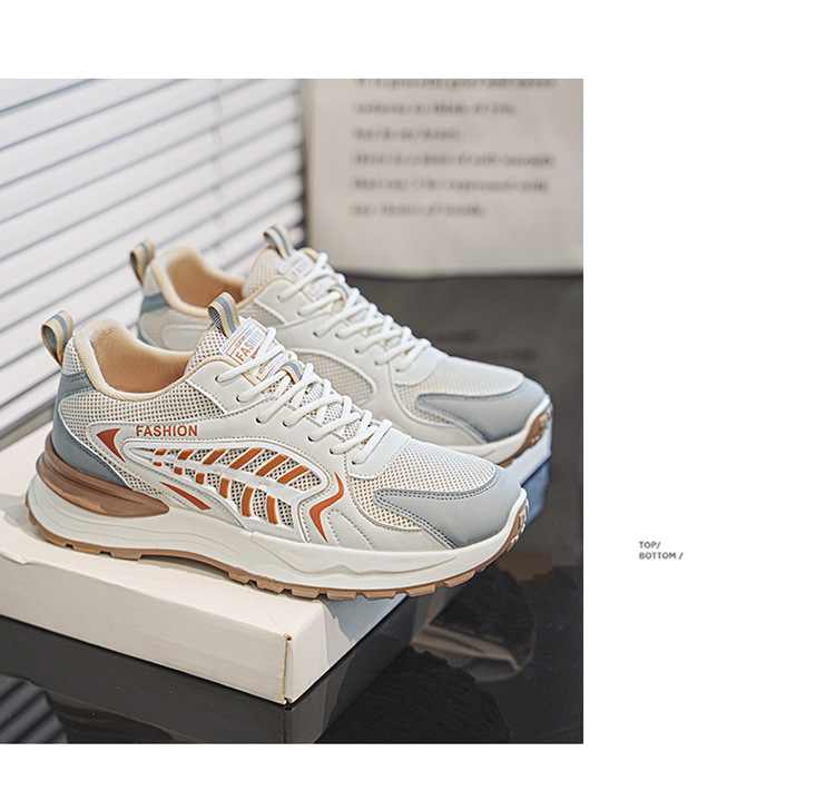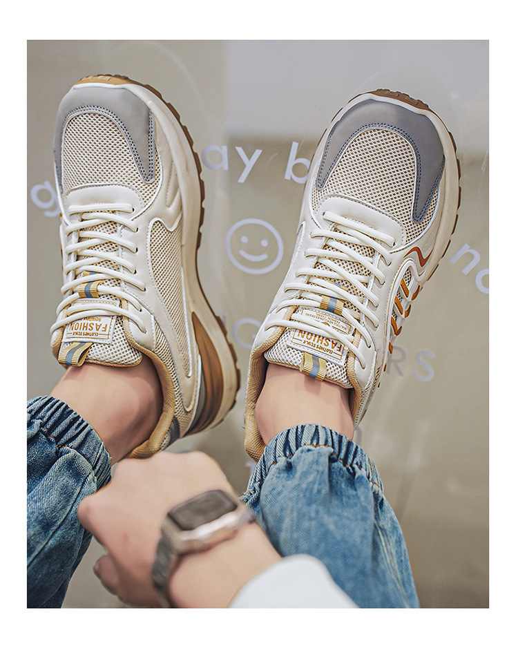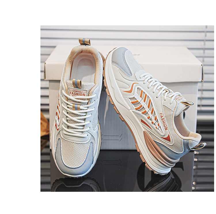 網面透氣厚底增高休閒運動鞋【米色】一雙