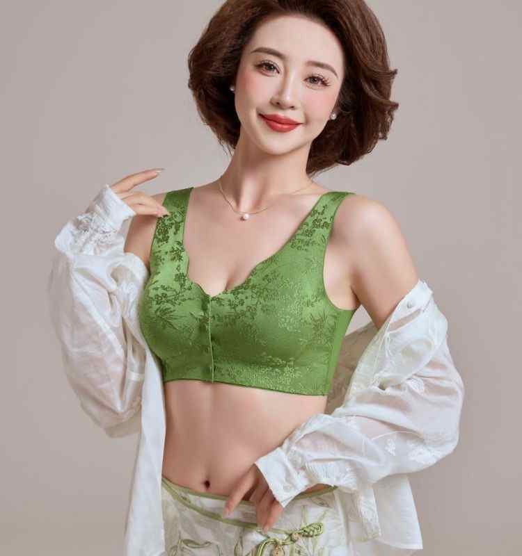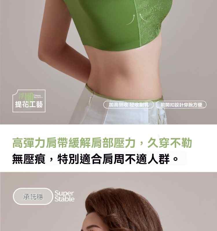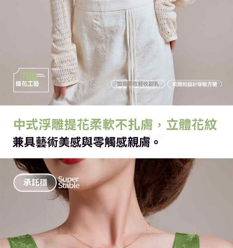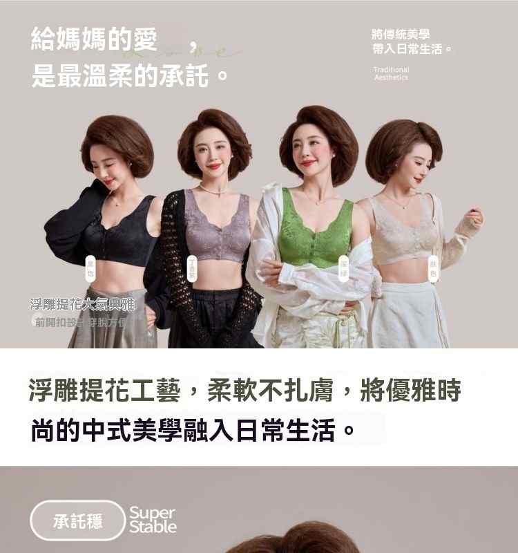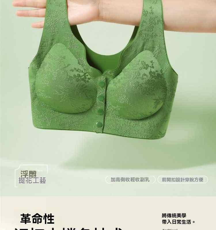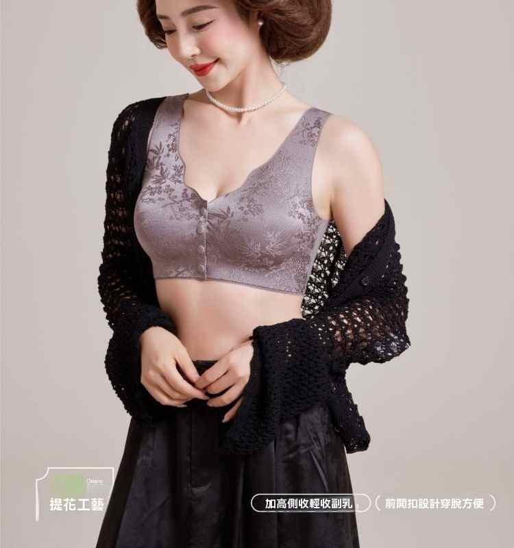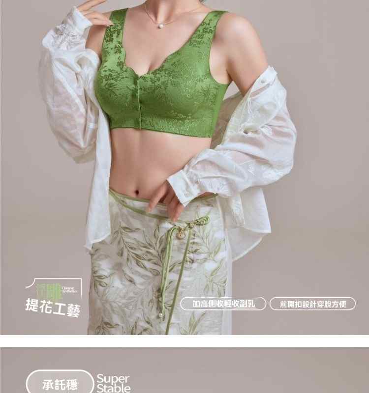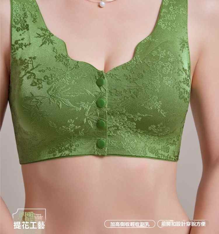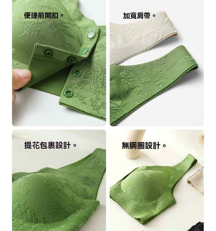 浮雕提花前開扣調整型內衣【綠】+【紫】+【膚】+【黑】各一件(到手4件!每件均價245元!)