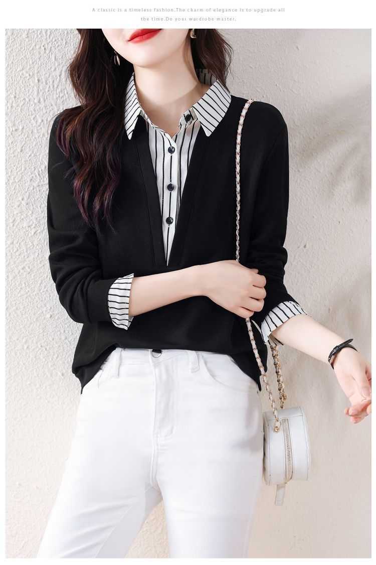 假兩件條紋時尚減齡拼接衛衣【買一送一】藏青色+黑色各一件(到手2件,每件均價649元!)