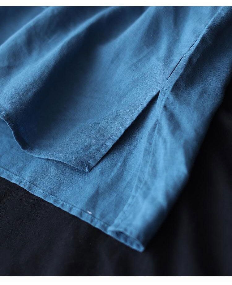 重磅好料棉麻純色刺繡寬鬆上衣【買一送一】【藍色】+【紅色】各一件(到手兩件,每件均價549元)
