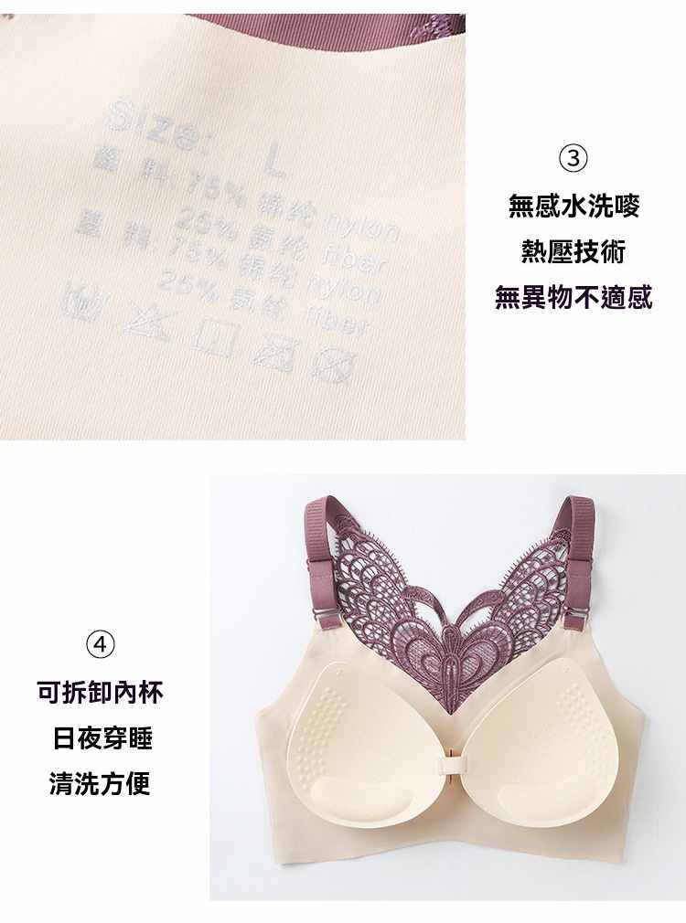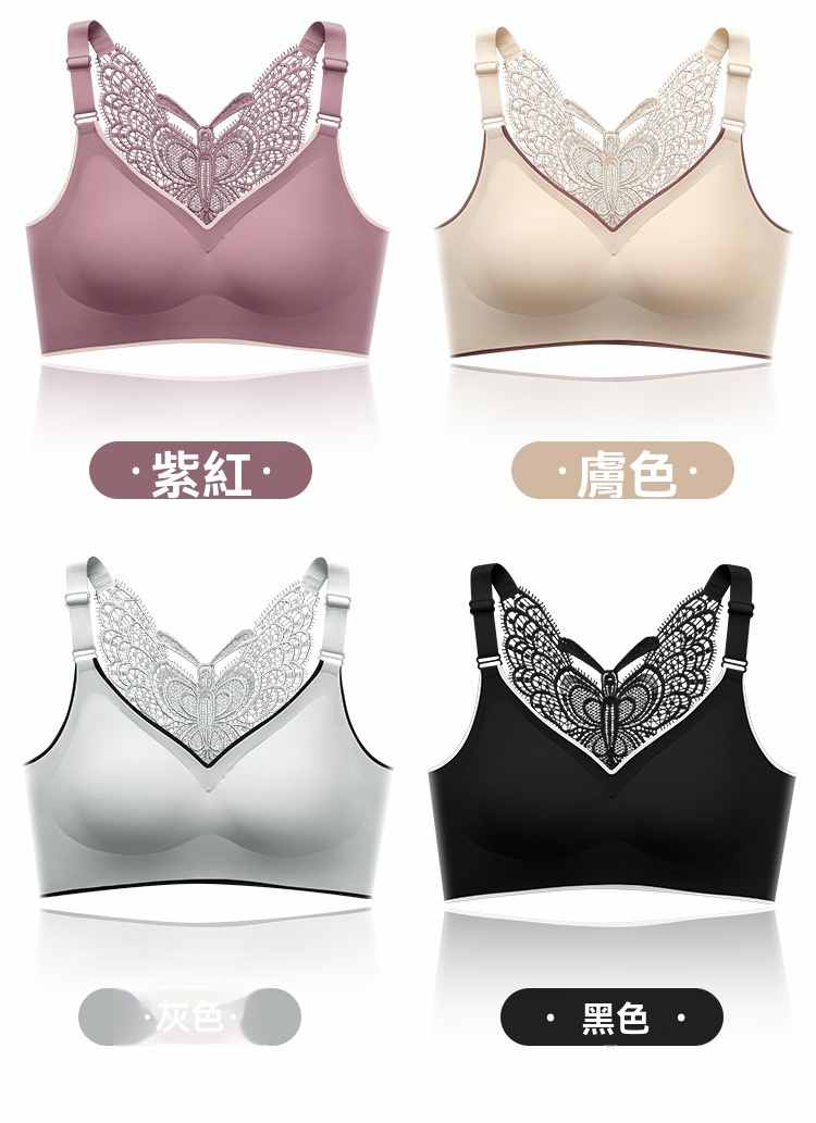 春夏蝴蝶美背聚攏大碼女士內衣【買一送二】【紫色】+【黑色】+【膚色】各一件(到手3件,每件均價333元!)