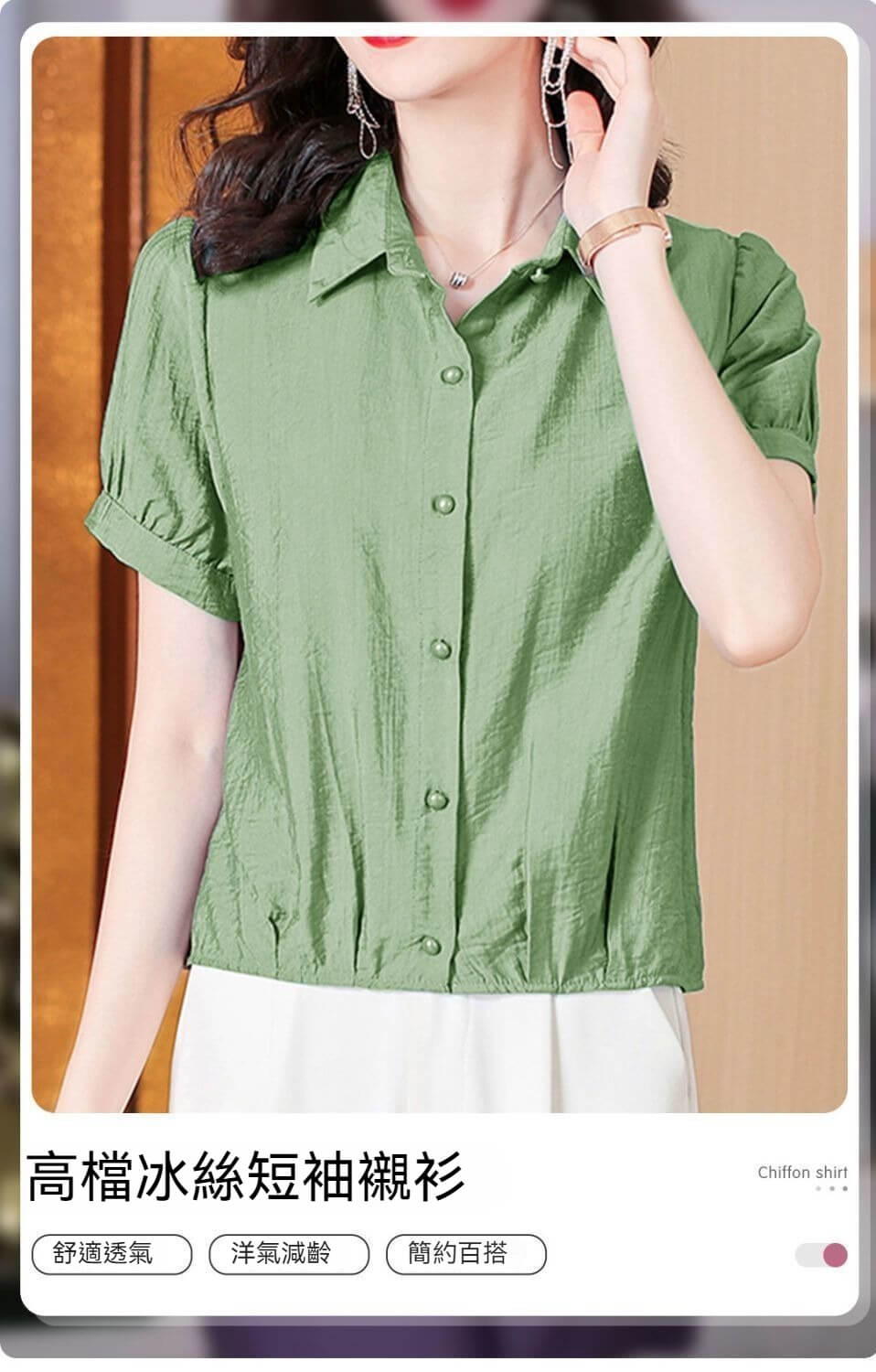 時尚顯瘦洋氣棉麻純色短袖襯衫【買一送一】【綠色】+【粉色】各一件(到手兩件,每件均價549元!)