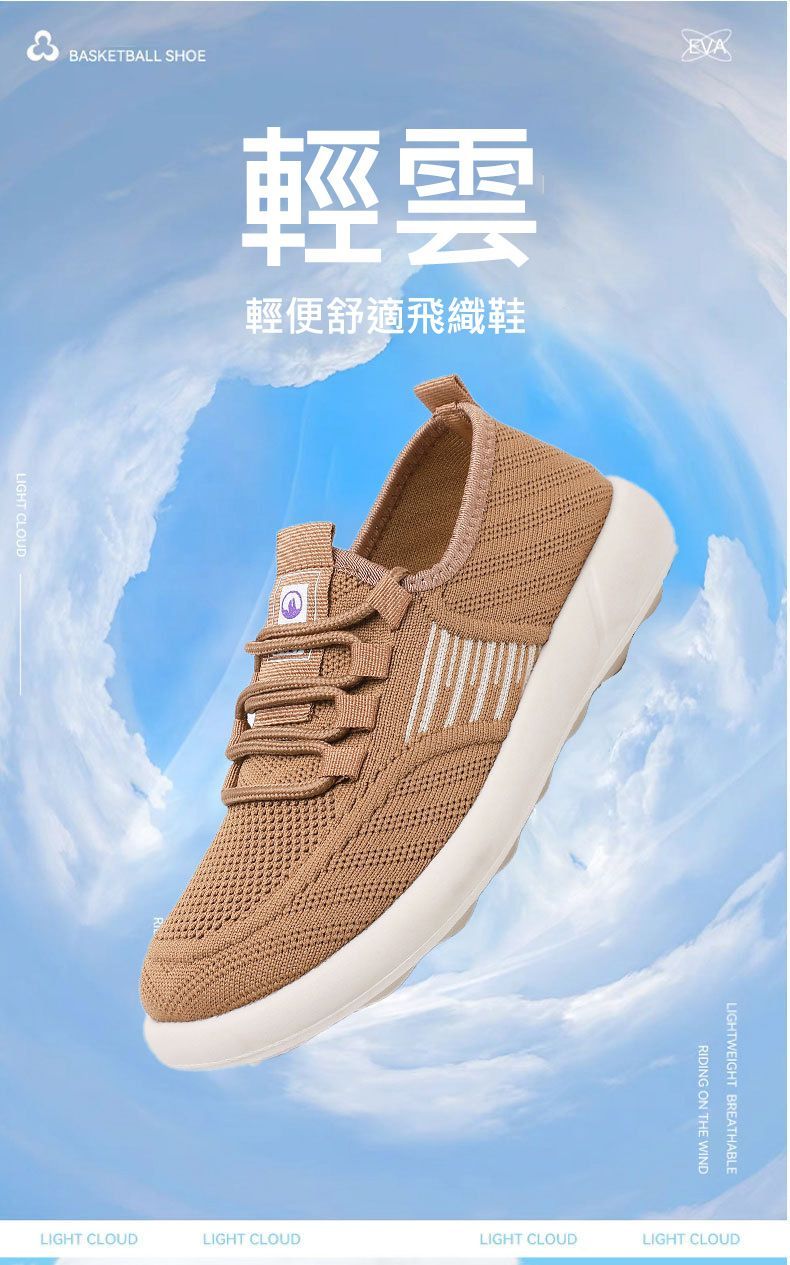 貼合腳部曲線舒適繫帶柔軟透氣飛織鞋【買一送一】【駝色】+【米白色】各一雙(到手兩雙,每雙均價549元!)