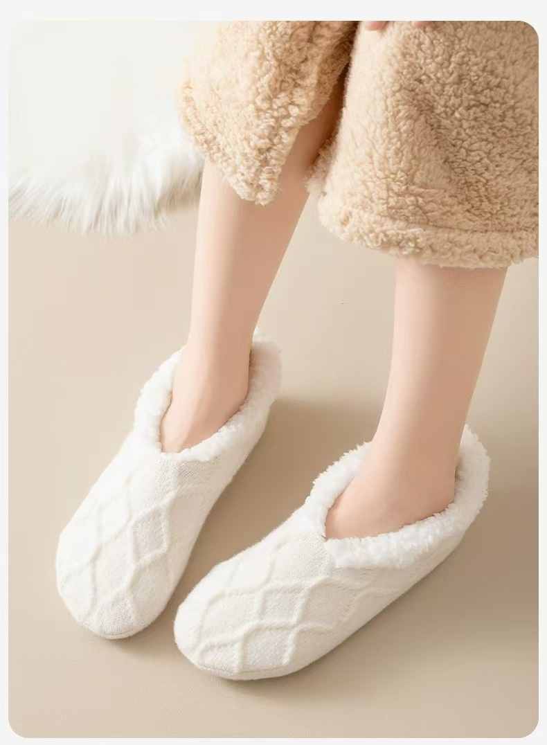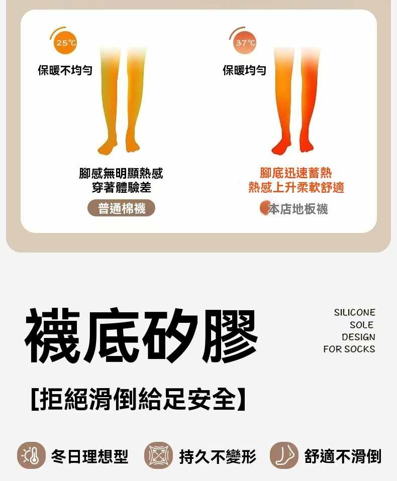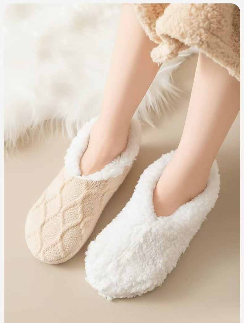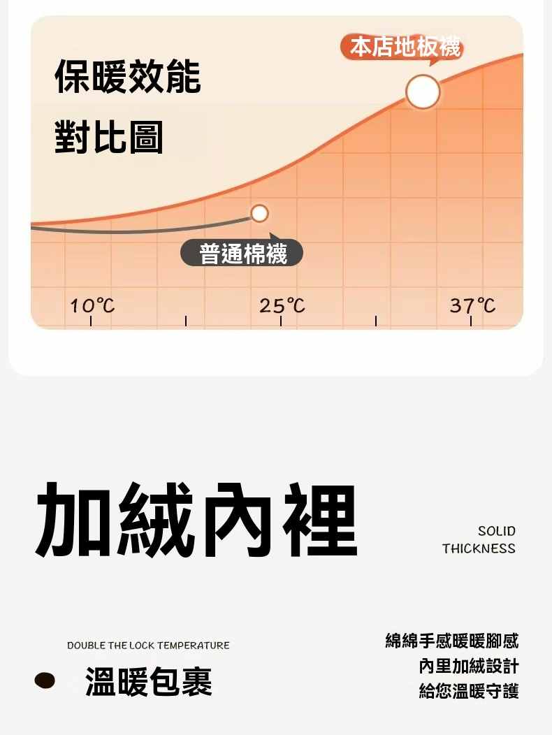 防滑舒適辦公居家加絨保暖襪【奶白色】+【杏色】各一組(到手2組,每組均價399元)