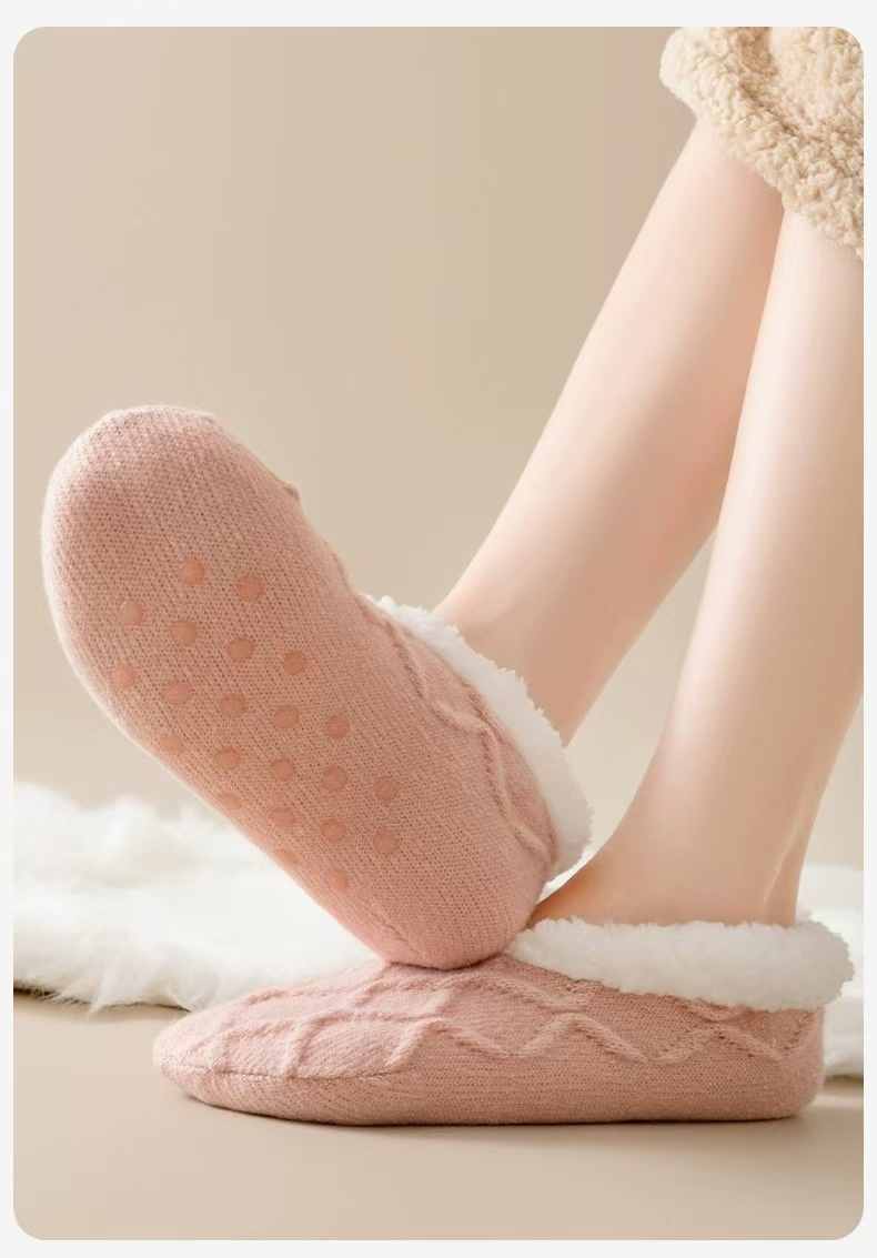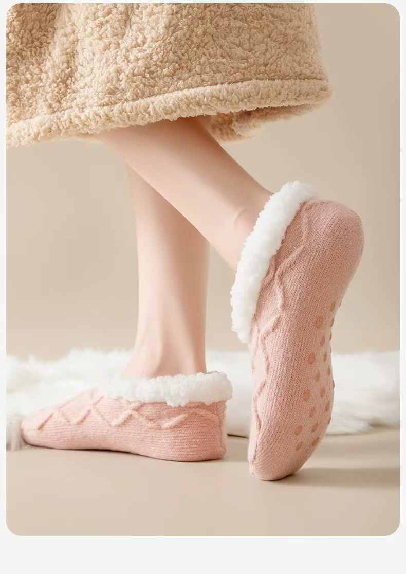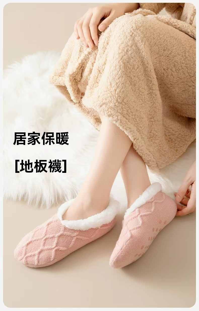 防滑舒適辦公居家加絨保暖襪【杏色】+【粉色】各一組(到手2組,每組均價399元)