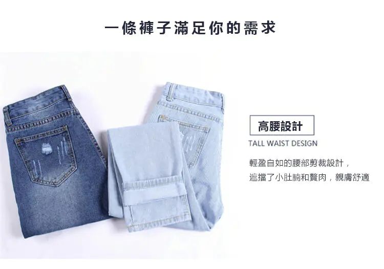 顯高顯瘦經典四色新款破洞牛仔褲【買一送一】【淺藍色】+【深藍】各一條(到手兩條,每條均價649元)