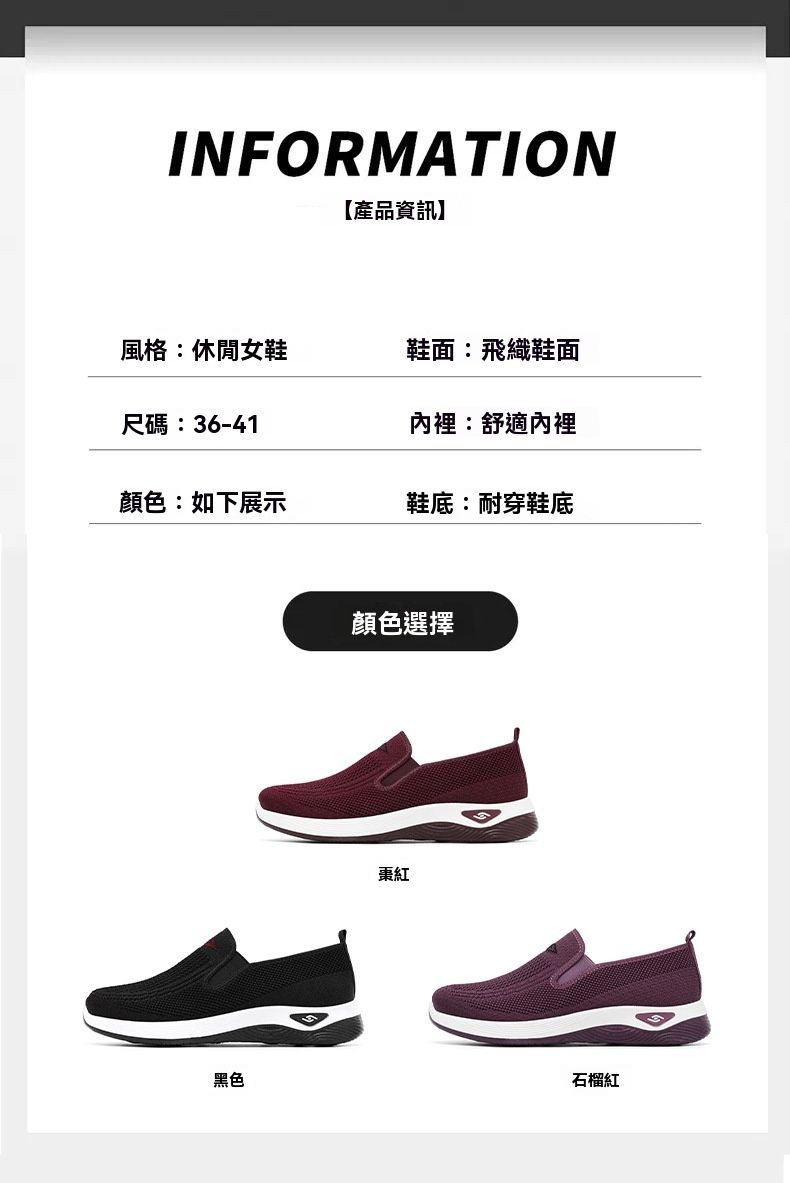 自如舒適透氣厚底飛織女鞋【買一送一】黑色+石榴紅各一雙(到手兩雙,每雙均價499元!)