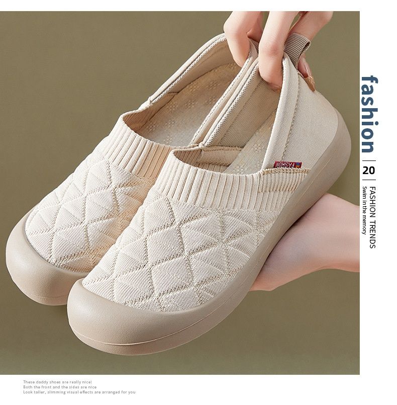 百搭輕便平底軟底一腳蹬飛織鞋【買一送一】【米色】+【黑色】各一雙(到手兩雙,每雙均價549元!)