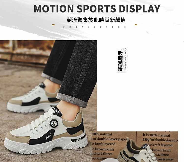 旋轉扣戶外透氣低幫休閒運動鞋【卡其色】+【米色】各一雙(優惠400,到手2雙,每雙均價798元)