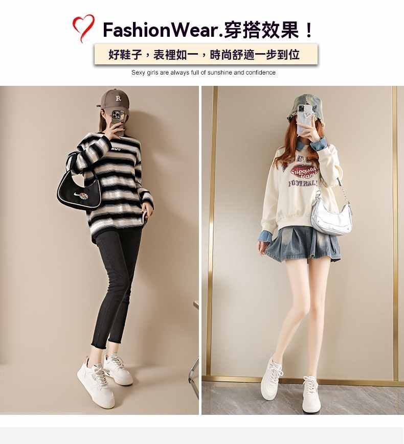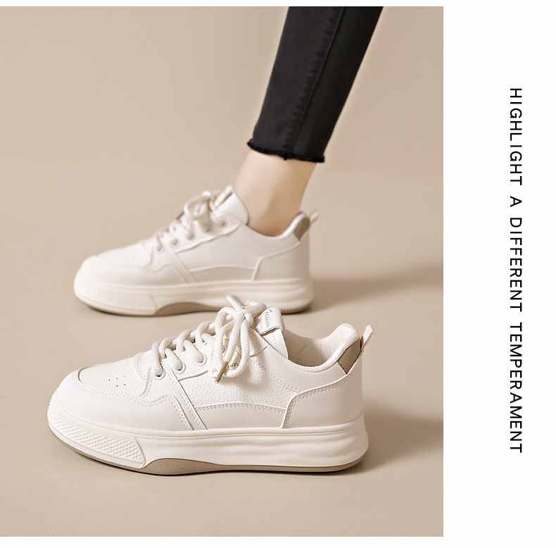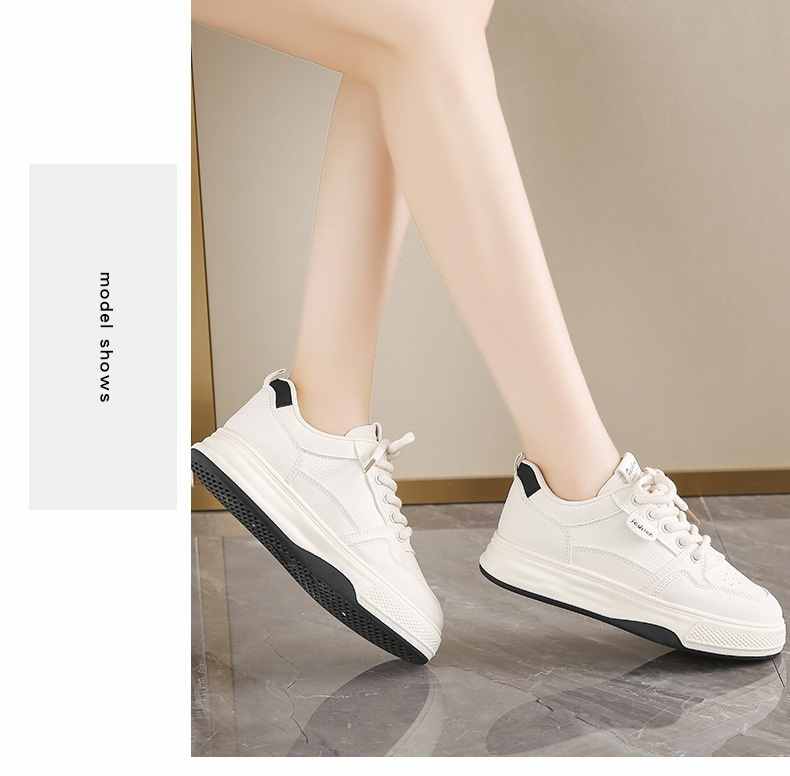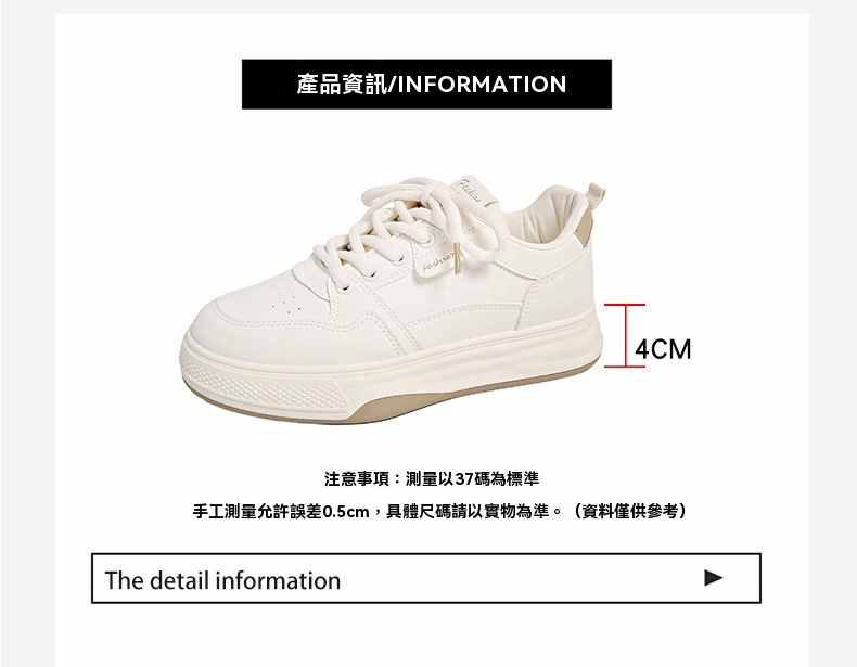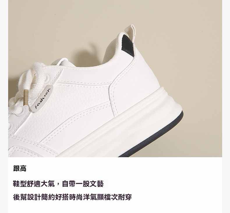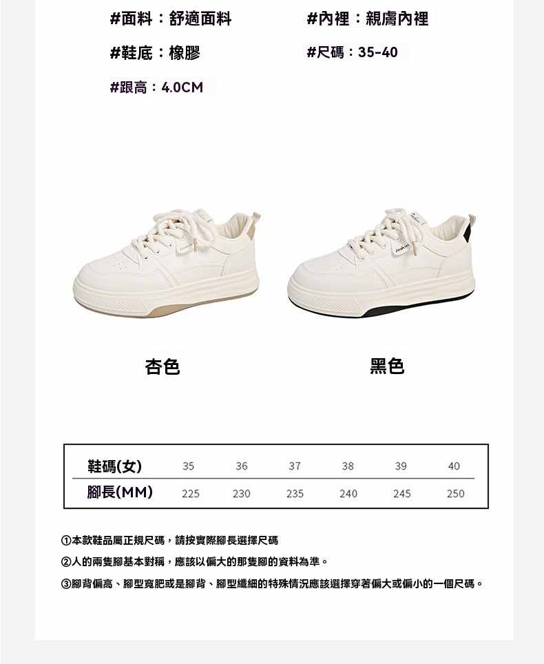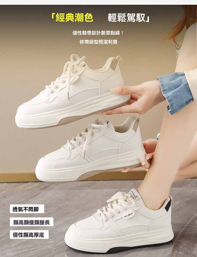 利落簡潔顯高厚底休閒女鞋【買一送一】【米杏色】+【米黑色】各一雙(到手兩雙,每雙均價549元!)