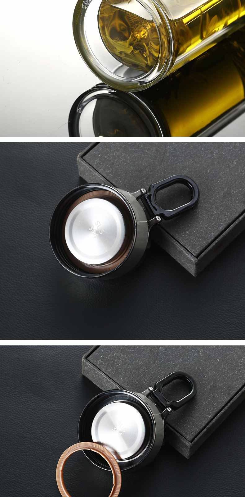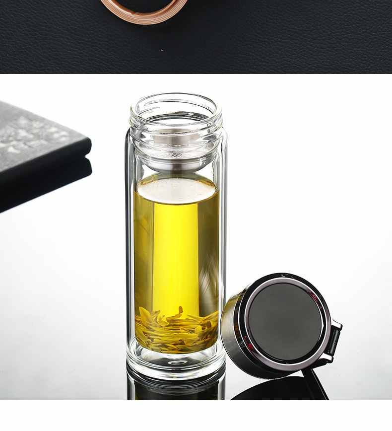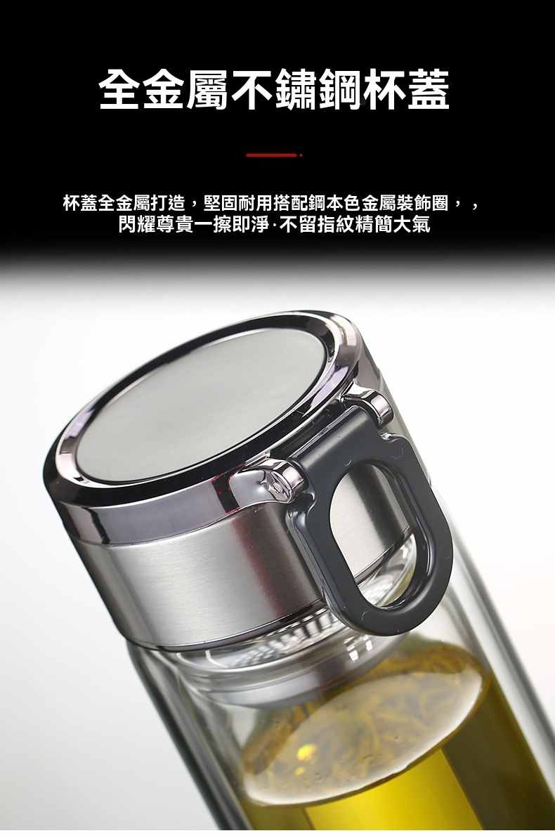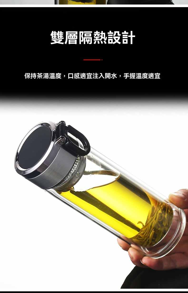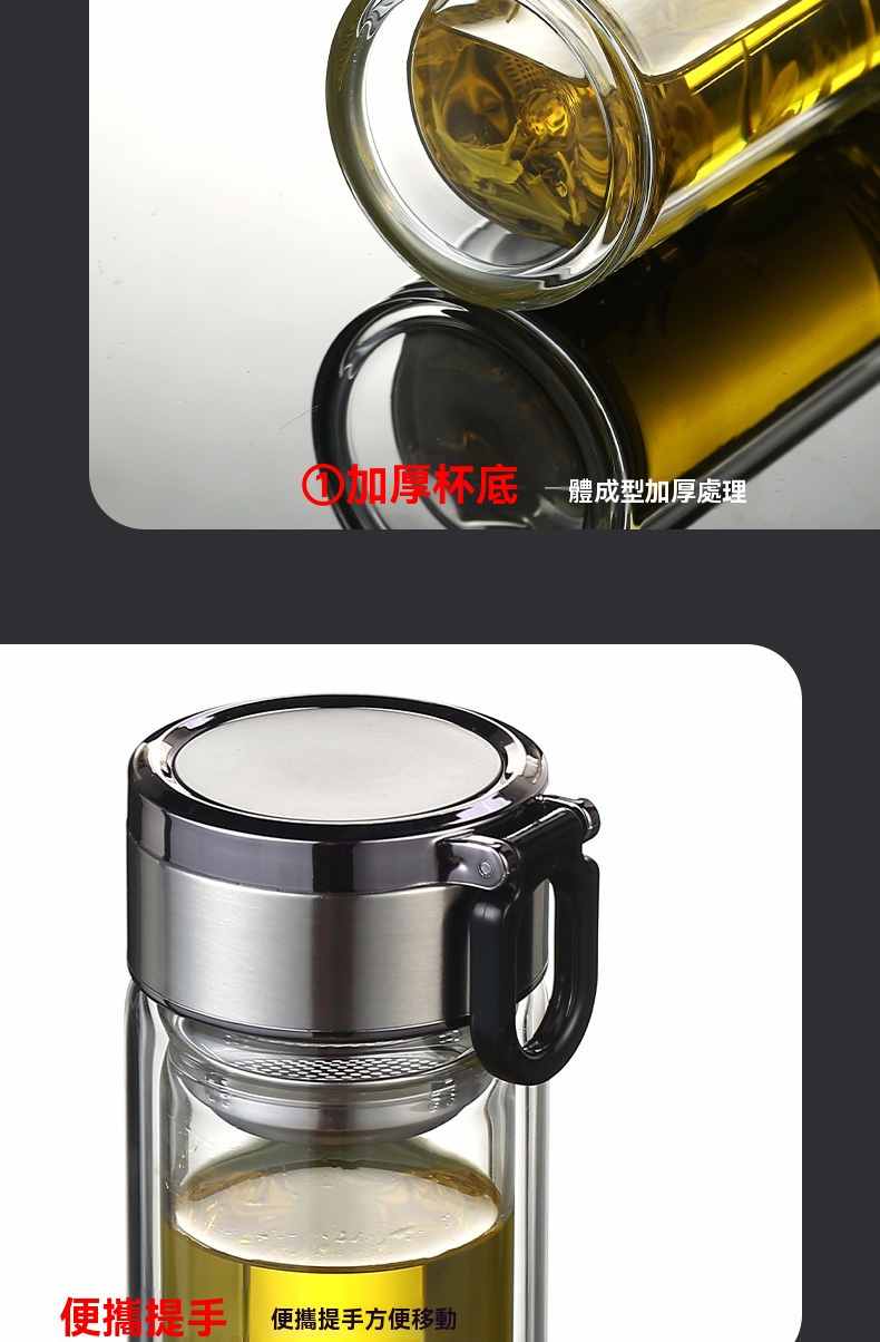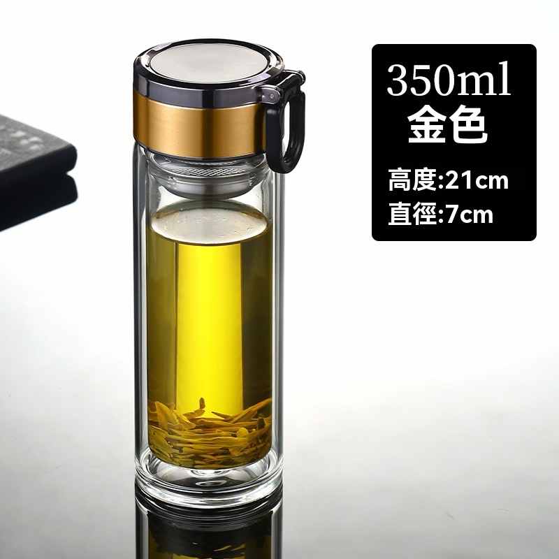雙層玻璃提環茶水分離杯【買一送一】金色+銀色各一組(到手2組,每組均價399元!)
