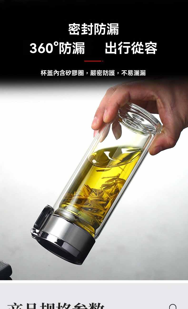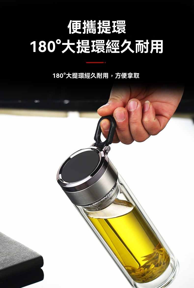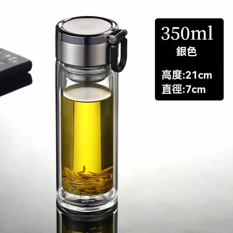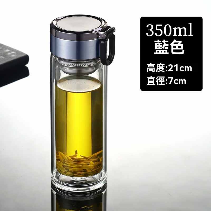雙層玻璃提環茶水分離杯【買一送一】銀色+藍色各一組(到手2組,每組均價399元!)