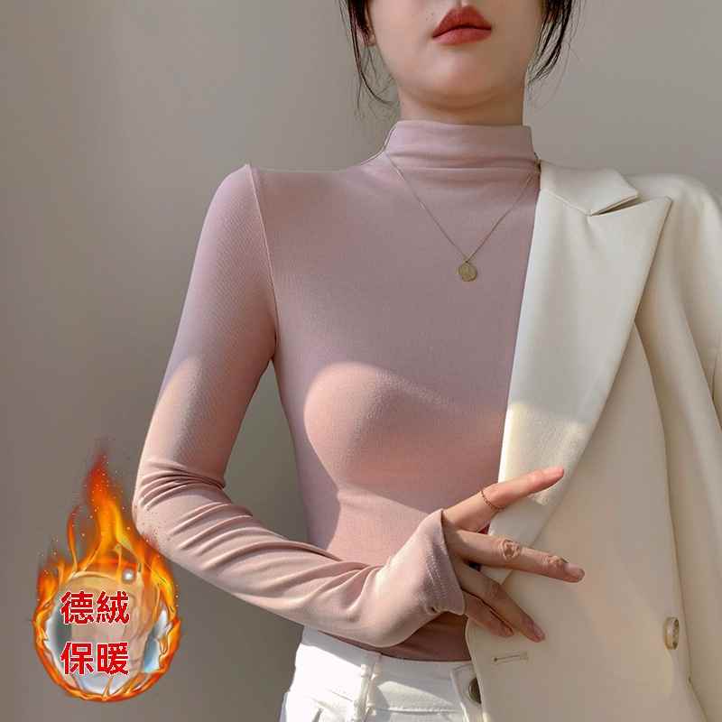 顯瘦百搭保暖純色德絨長袖上衣【買一送二】白色+酒紅色+粉色各一件(到手三件,每件333元!)