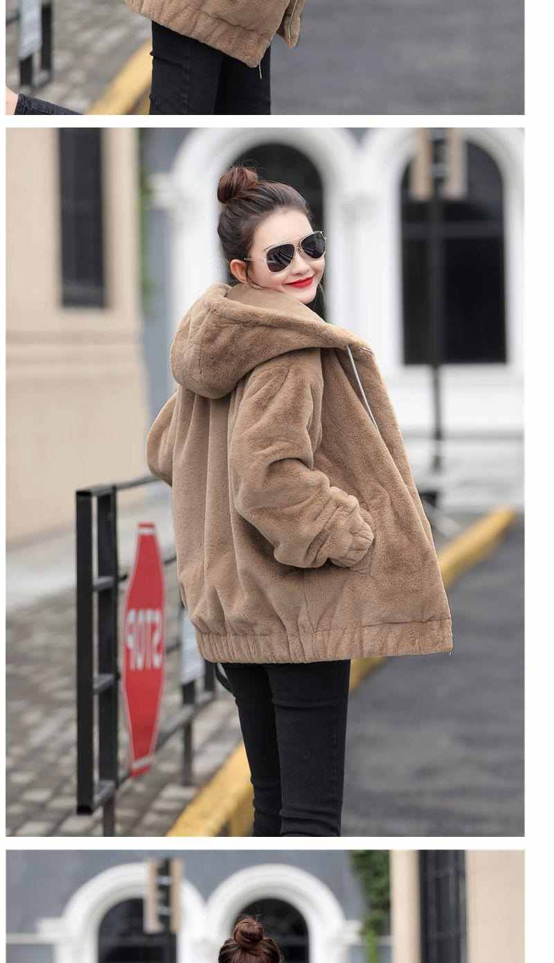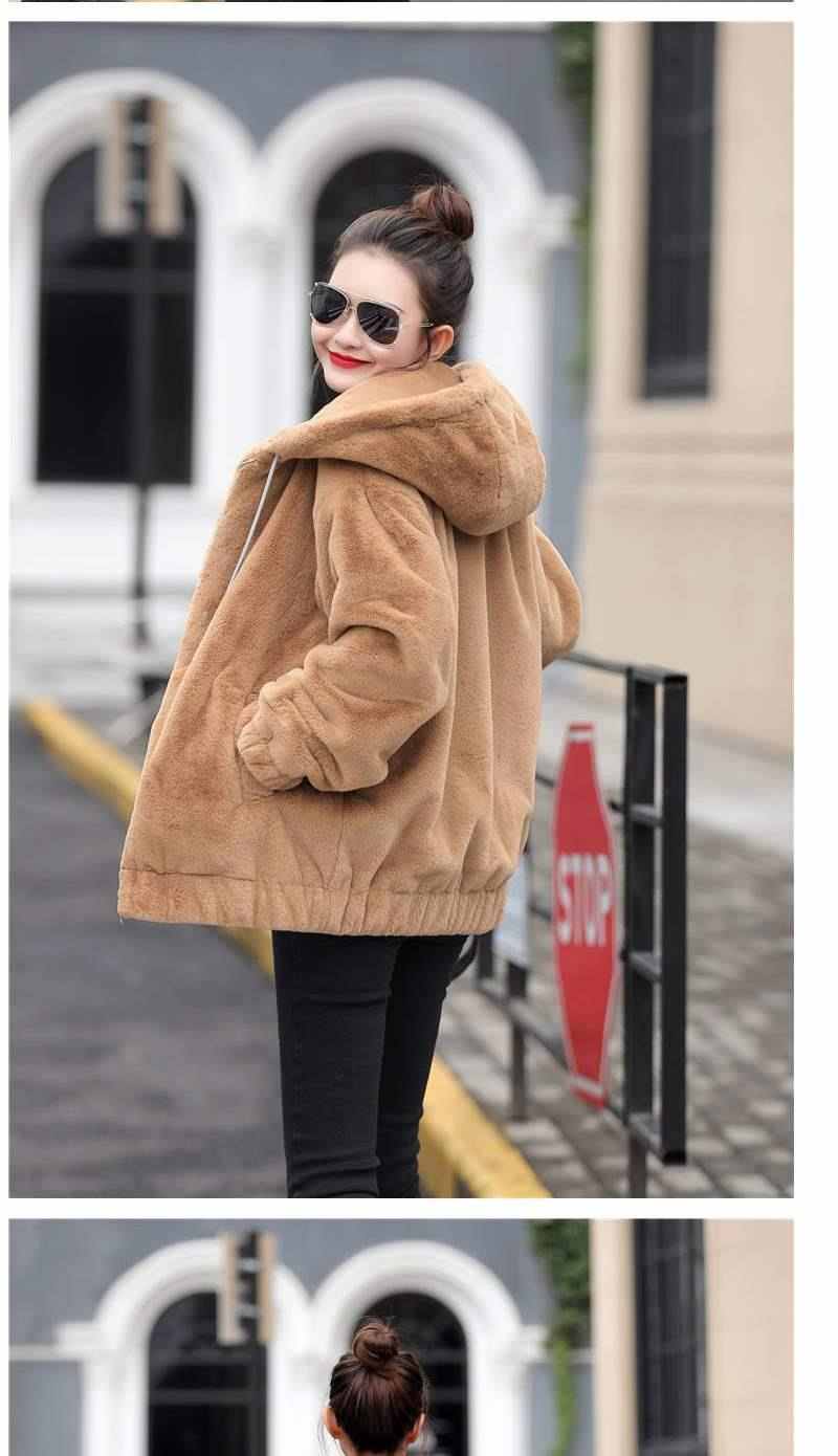 雙面絨寬鬆連帽拉鏈百搭外套【卡其色】一件