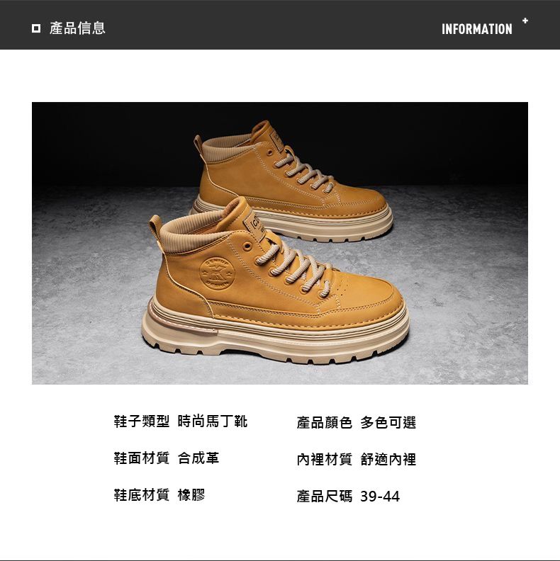 復古英倫男士中幫馬丁靴【卡其色】一雙