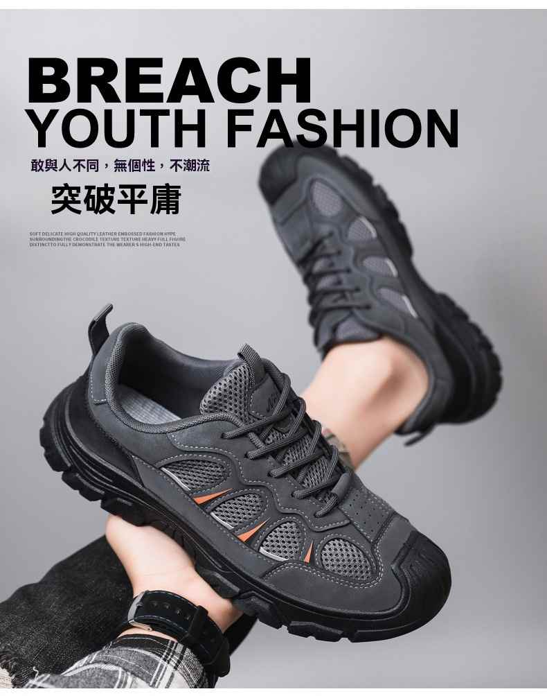 網面透氣厚底增高徒步男鞋【灰色】2雙(到手2雙,每雙均價649元!)