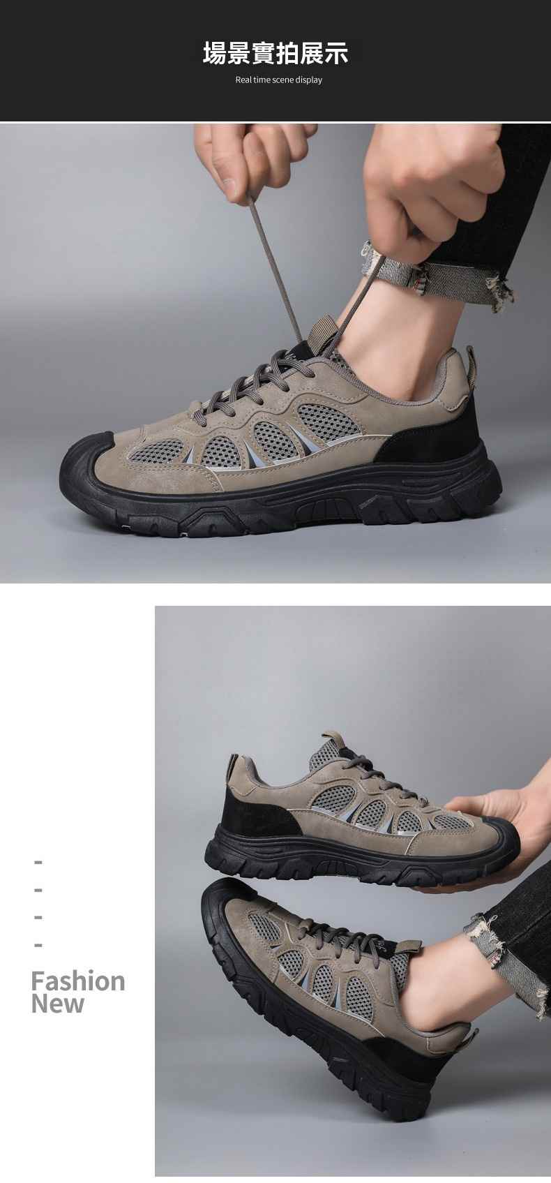 網面透氣厚底增高徒步男鞋【灰色】+【棕色】各一雙(到手2雙,每雙均價649元!)