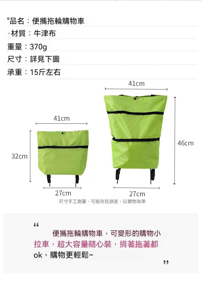 輕便便攜可折疊買菜小拉車【綠色】+【藍色】各一組(優惠400,到手2組,每組均價498元!)