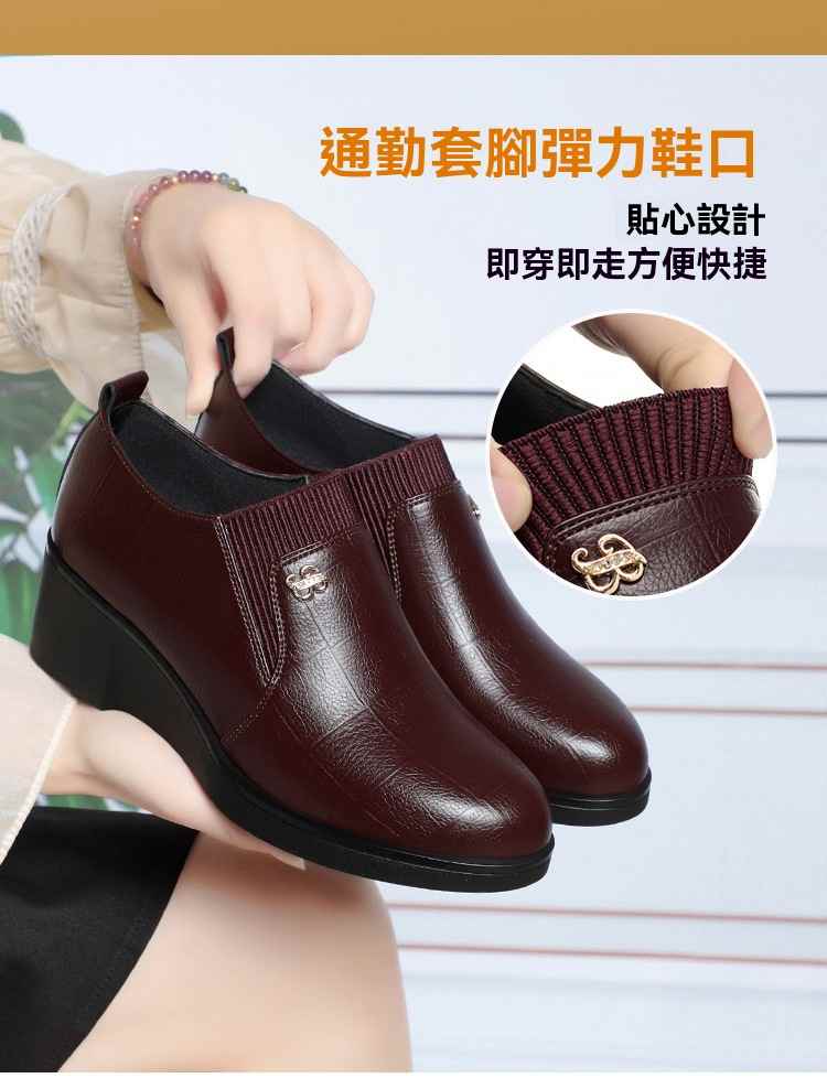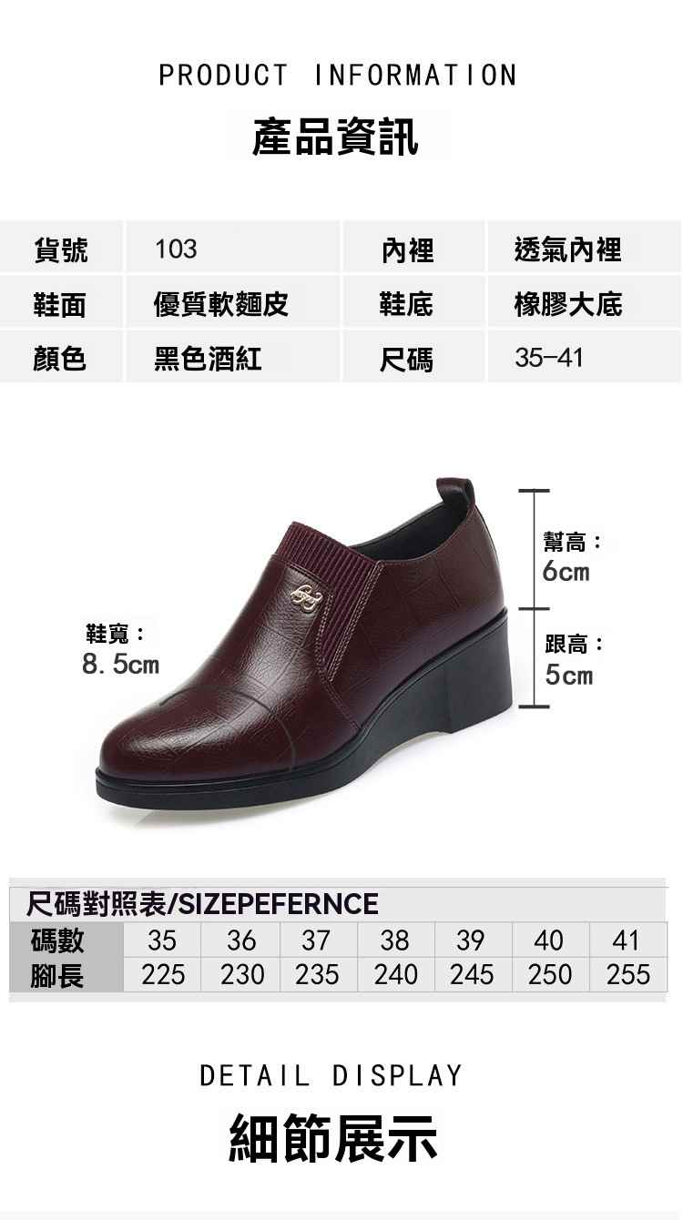 坡跟增高軟皮復古舒適女鞋【買一送一】【黑色】+【酒紅色】各一雙(到手兩雙,每雙均價549元!)