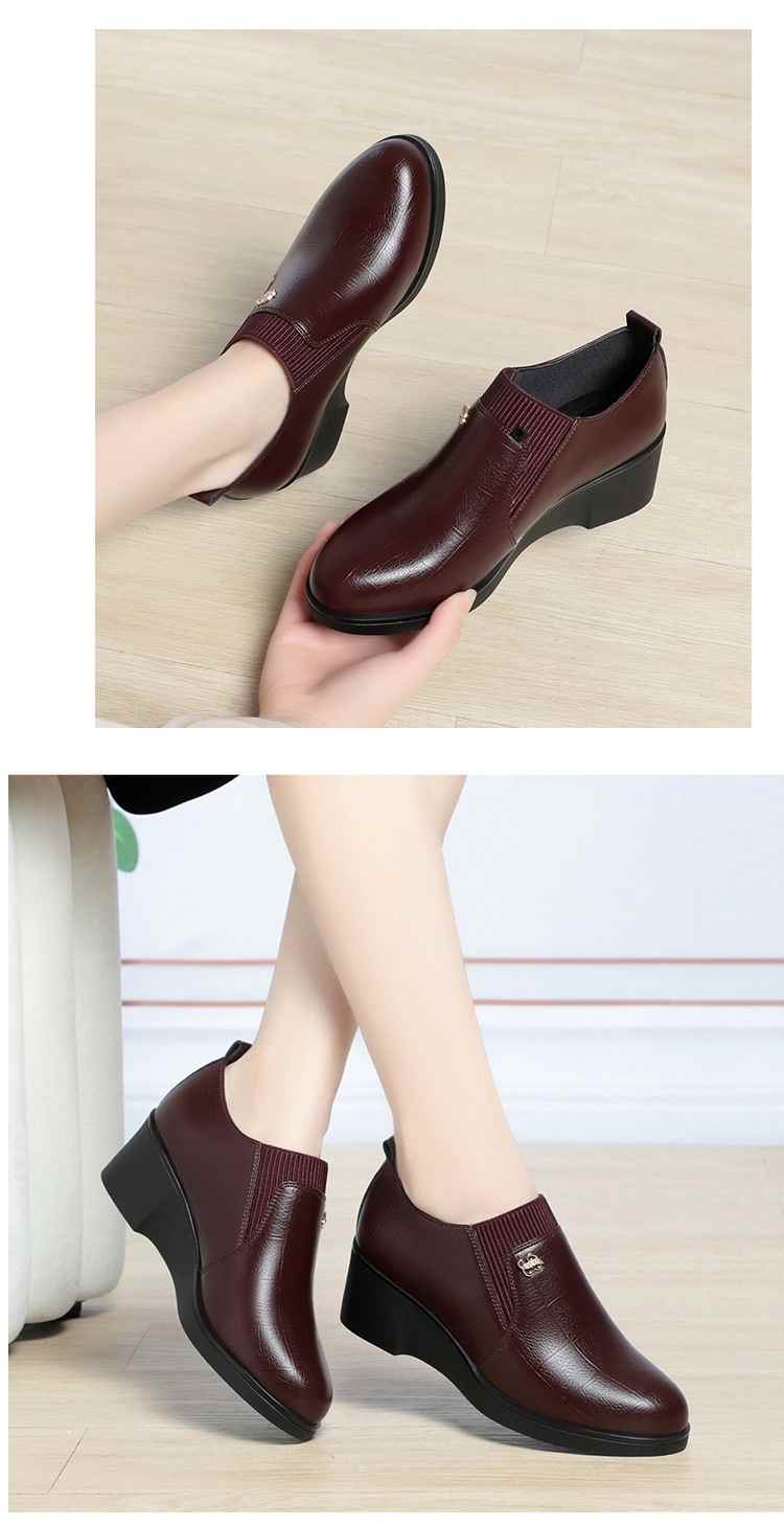 坡跟增高軟皮復古舒適女鞋【買一送一】【酒紅色】2雙(到手兩雙,每雙均價549元!)