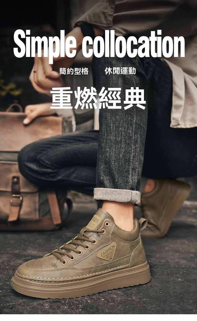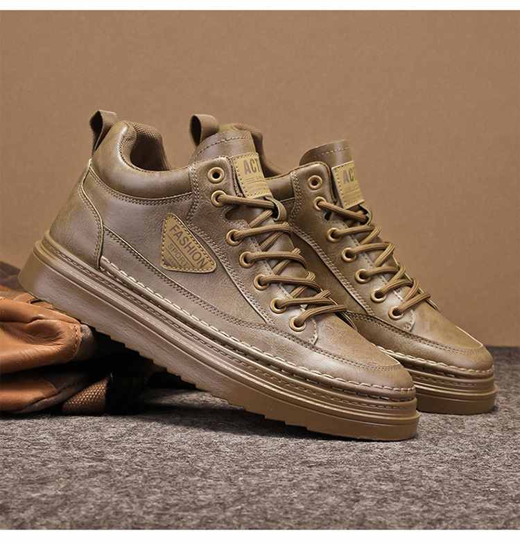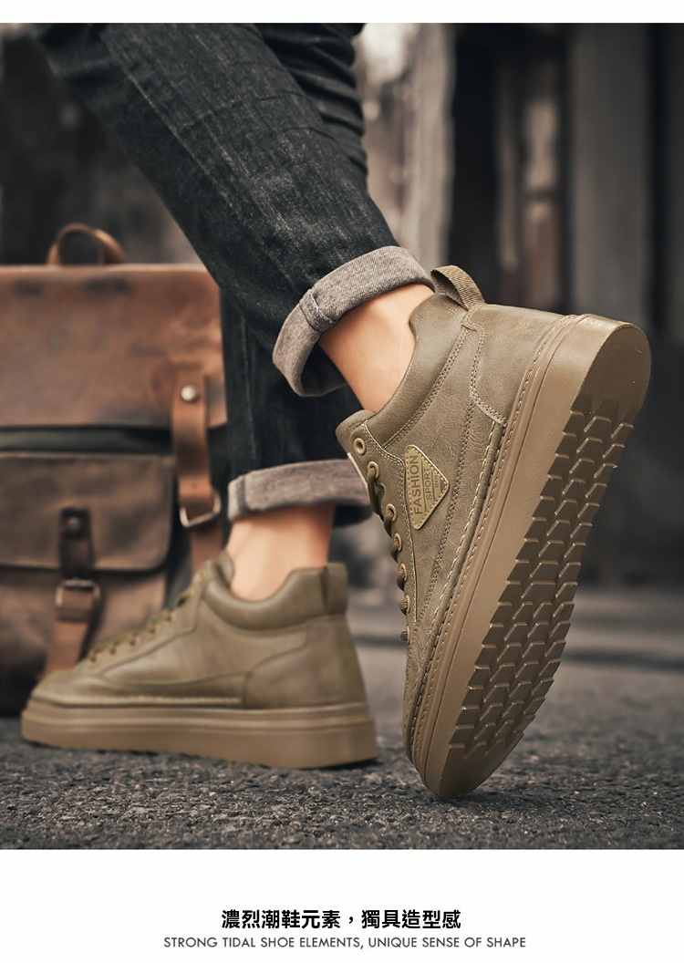型男厚底增高休閒高幫馬丁靴【買一送一】【棕色】2雙(到手兩雙,每雙均價549元!)