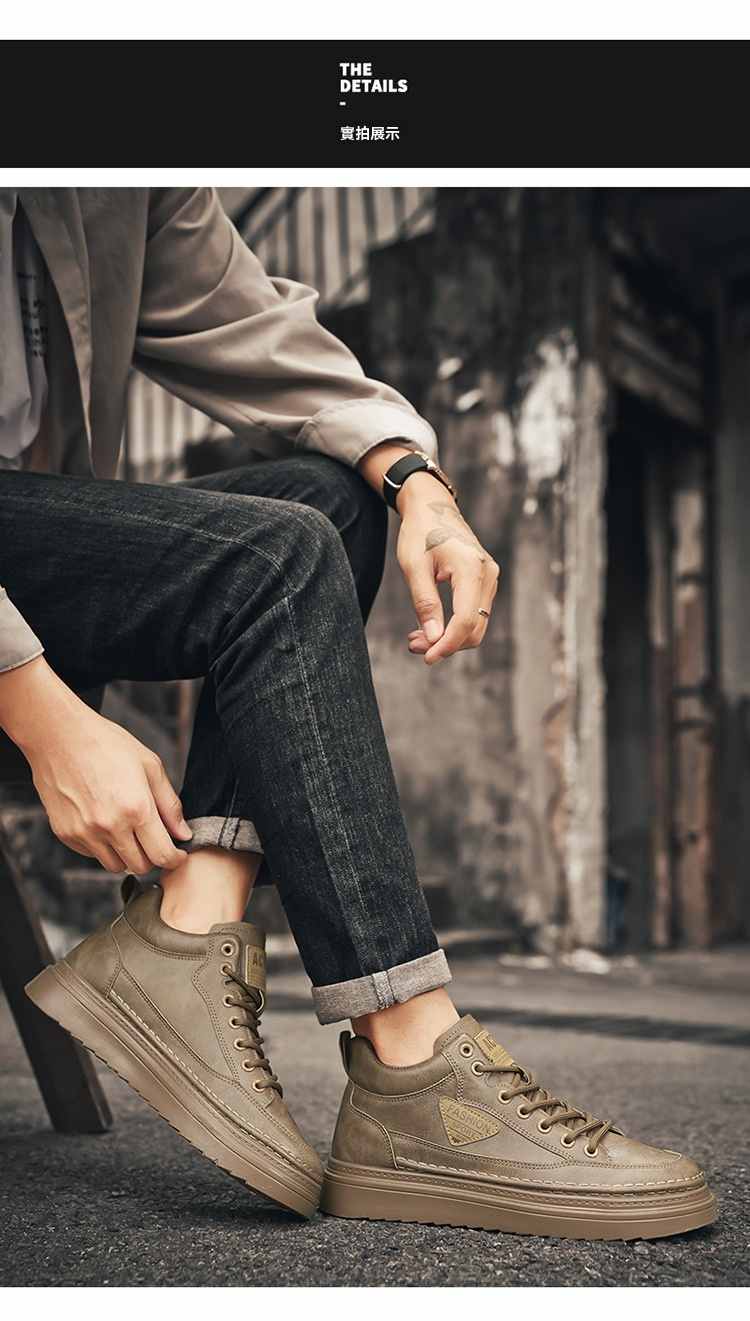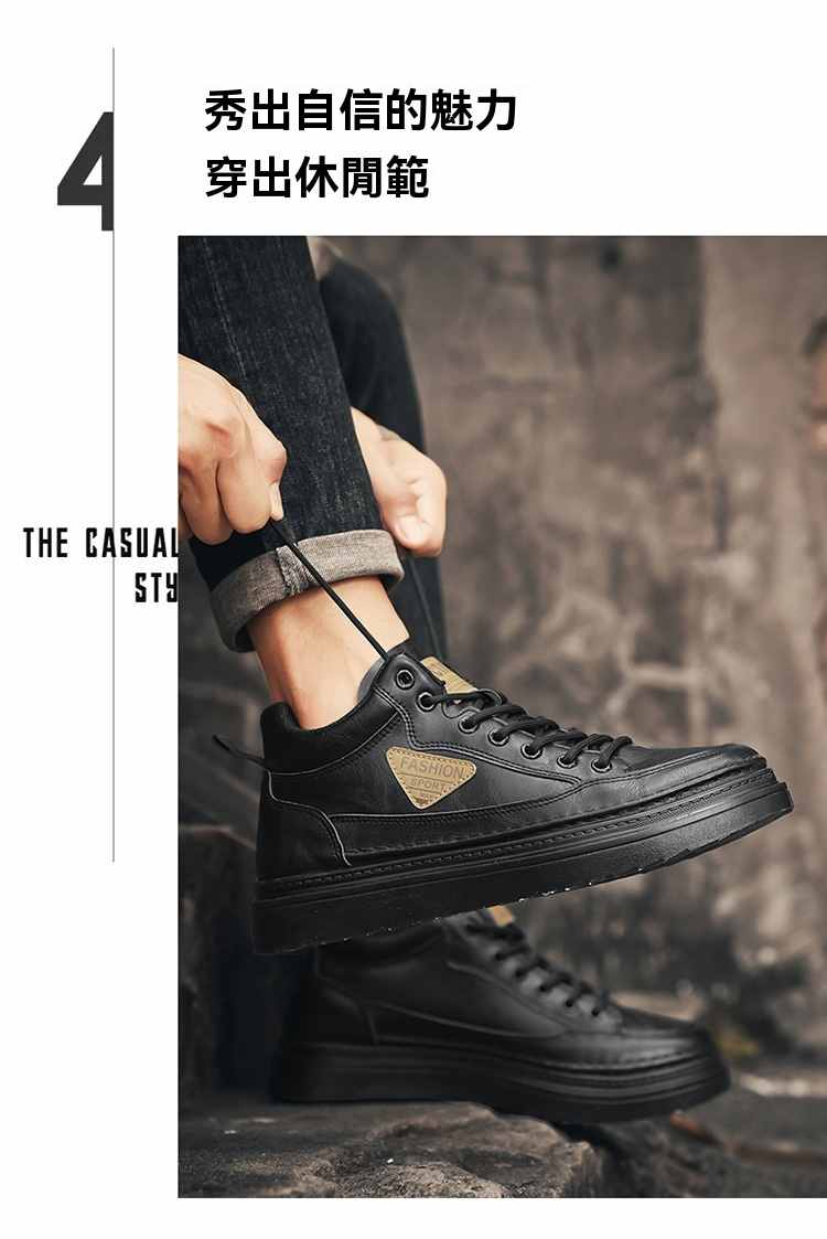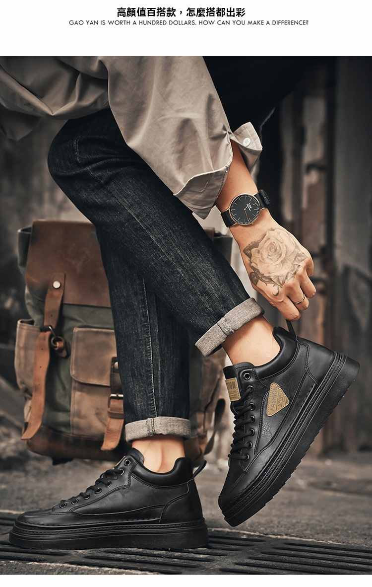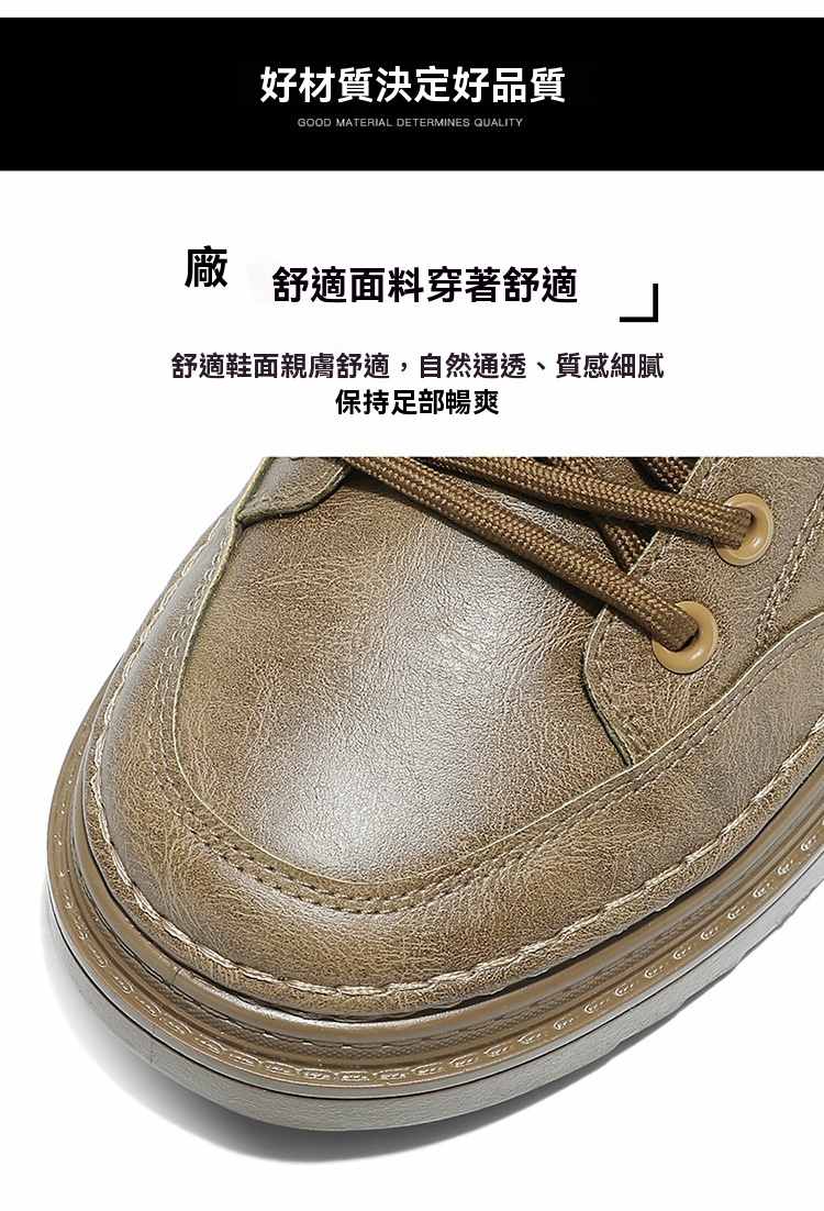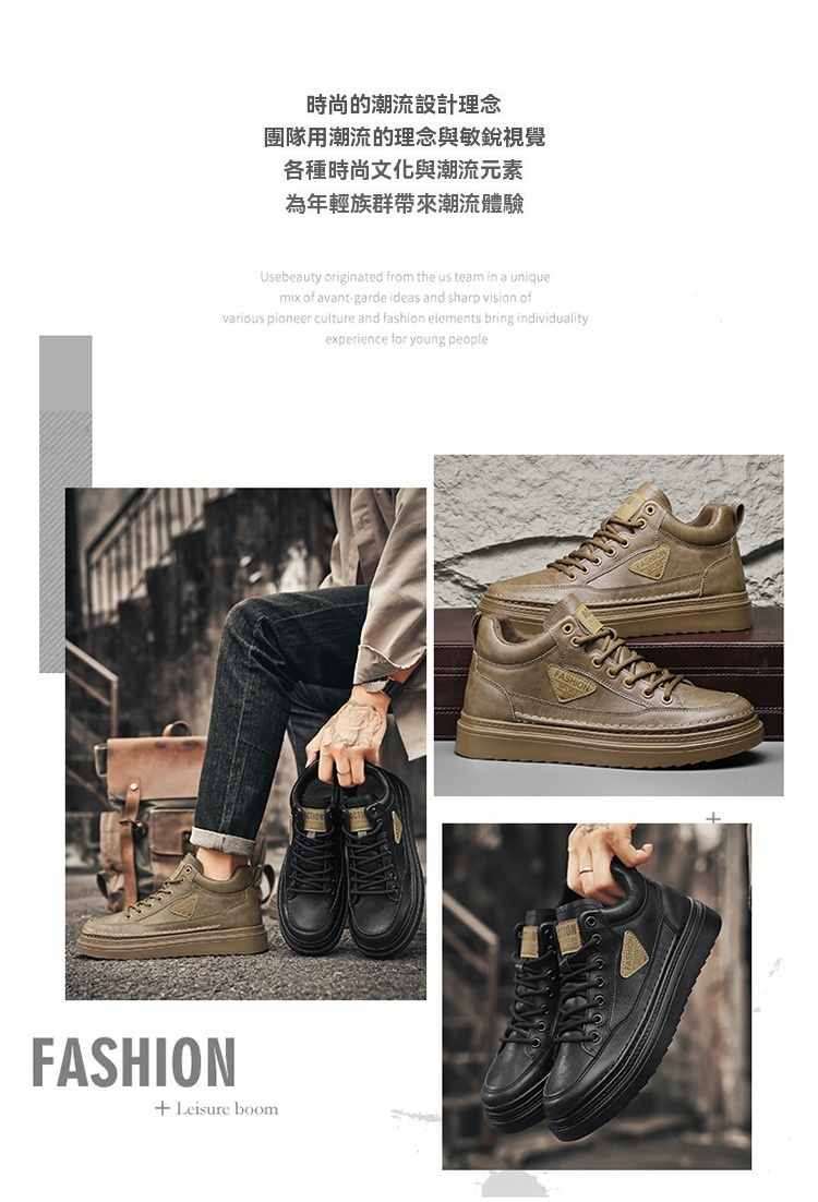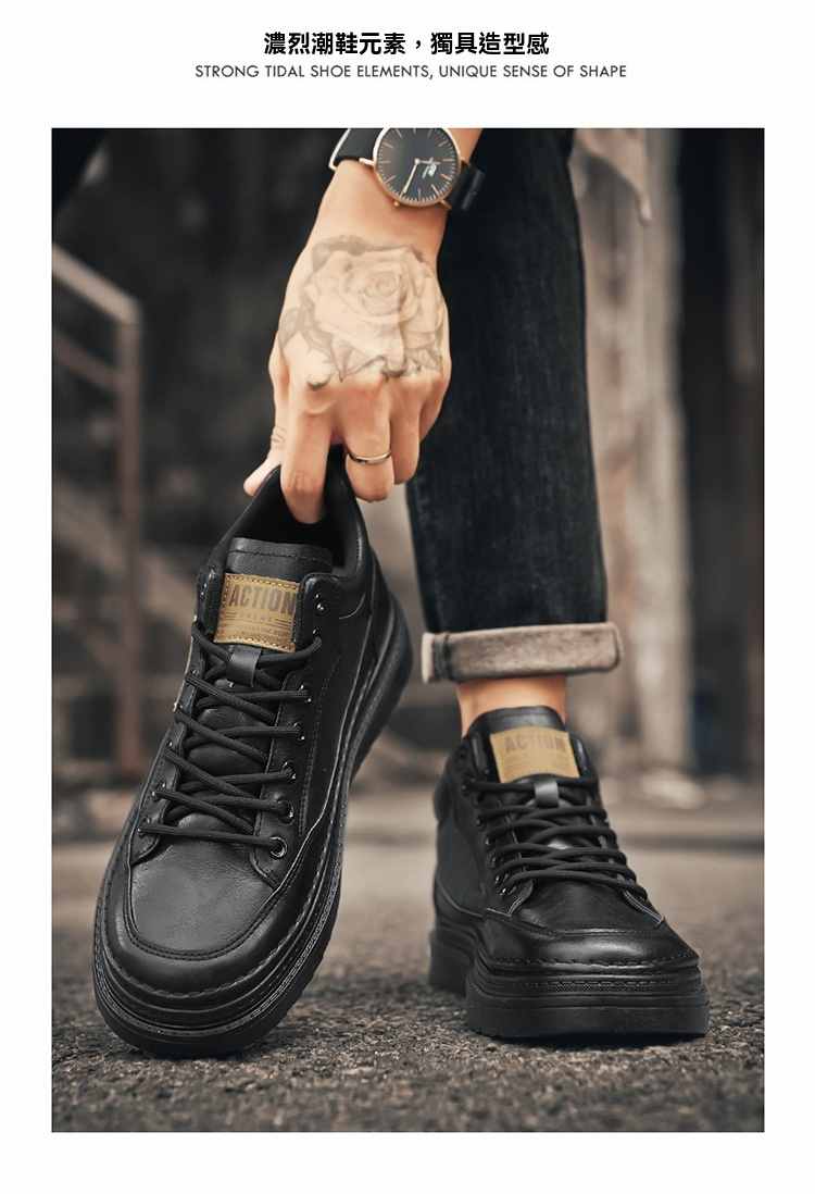 型男厚底增高休閒高幫馬丁靴【買一送一】【黑色】+【棕色】各一雙(到手兩雙,每雙均價549元!)