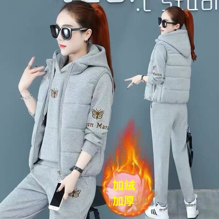 中老年加絨加厚運動服馬甲套裝【灰色】一組