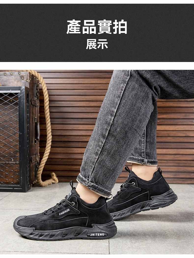 輕潮復古軟彈增高休閒男鞋【灰色】+【黑色】各一雙(到手2雙,每雙均價549元!)