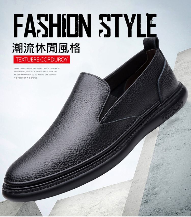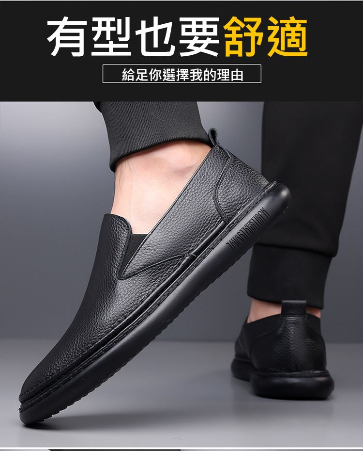 透氣懶人一腳蹬軟底休閒皮鞋【黑色】+【棕色】各一雙(優惠400)