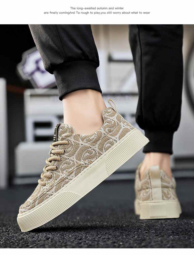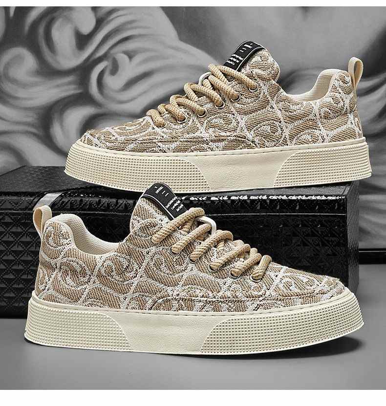 印花百搭舒適親膚透氣帆布鞋【米色】一雙