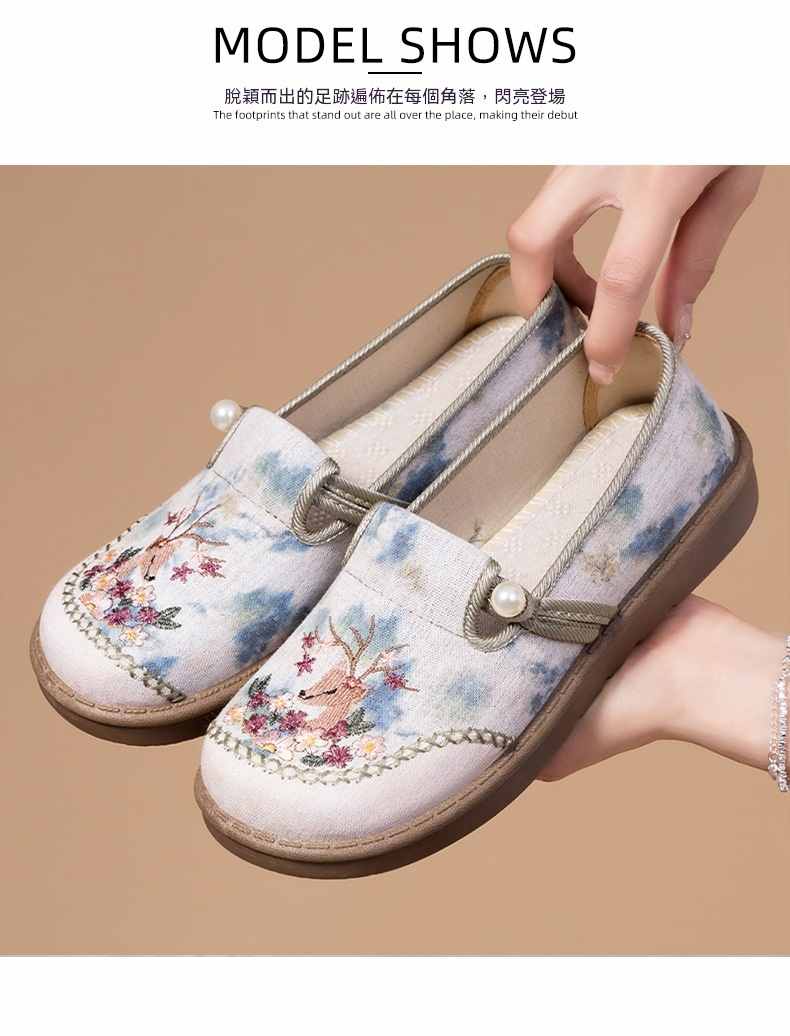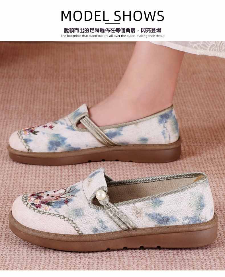 【乾爽舒軟!穩固耐穿!全台免運!】純手工繡花新款百搭厚底媽媽鞋