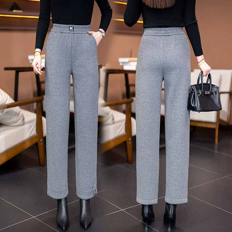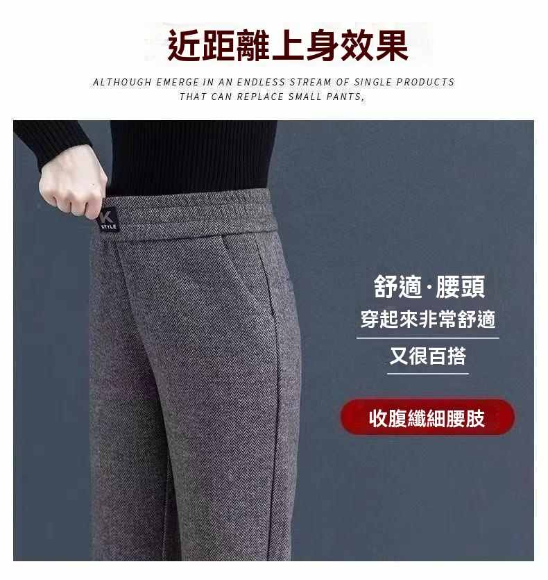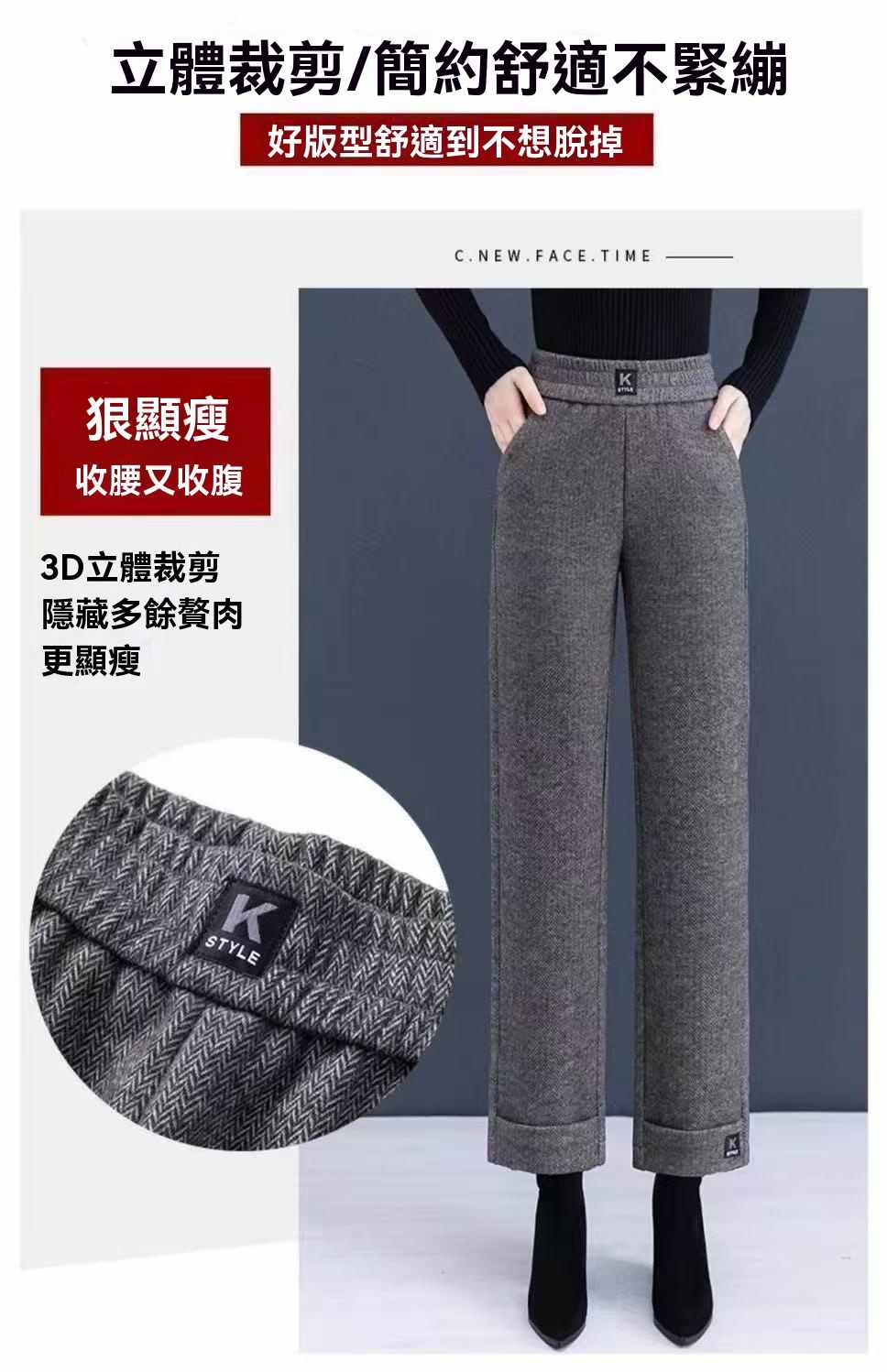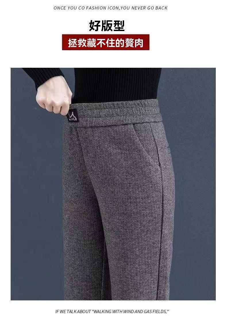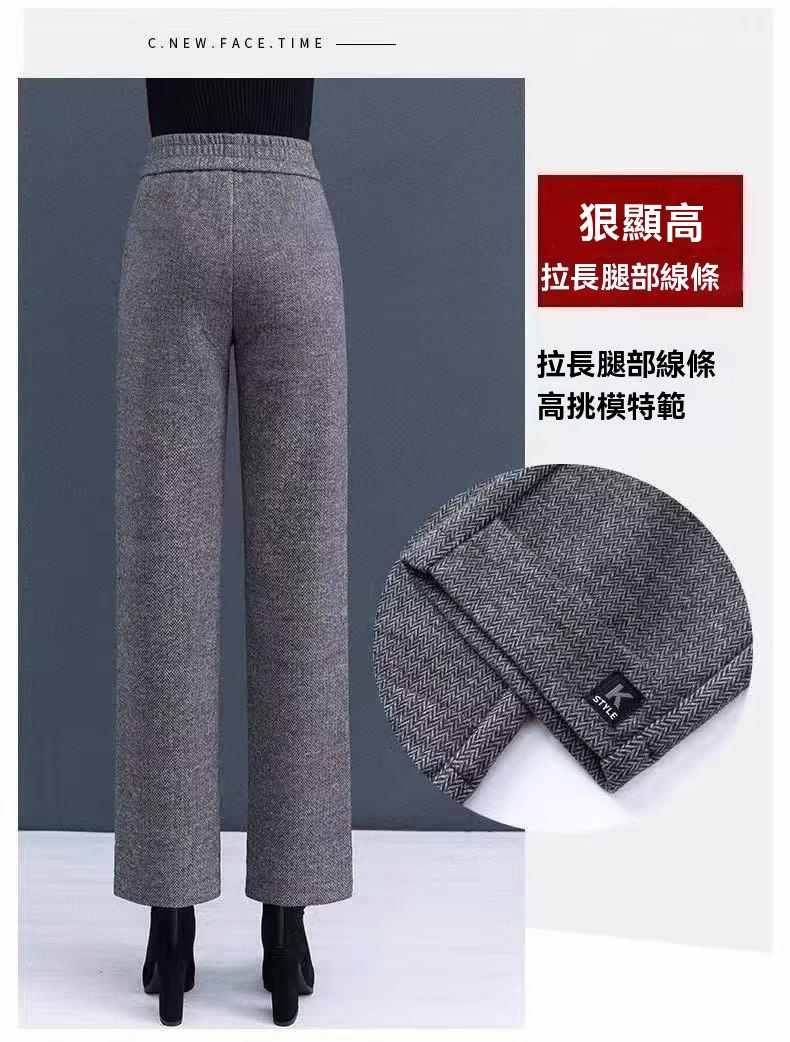 收腰收腹顯瘦顯高呢子媽媽闊腿褲【買一送一】黑灰色+淺灰色各一條(到手2條,每條均價549元!)