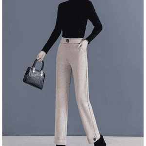 收腰收腹顯瘦顯高呢子媽媽闊腿褲【買一送一】黑灰色+燕麥色各一條(到手2條,每條均價549元!)