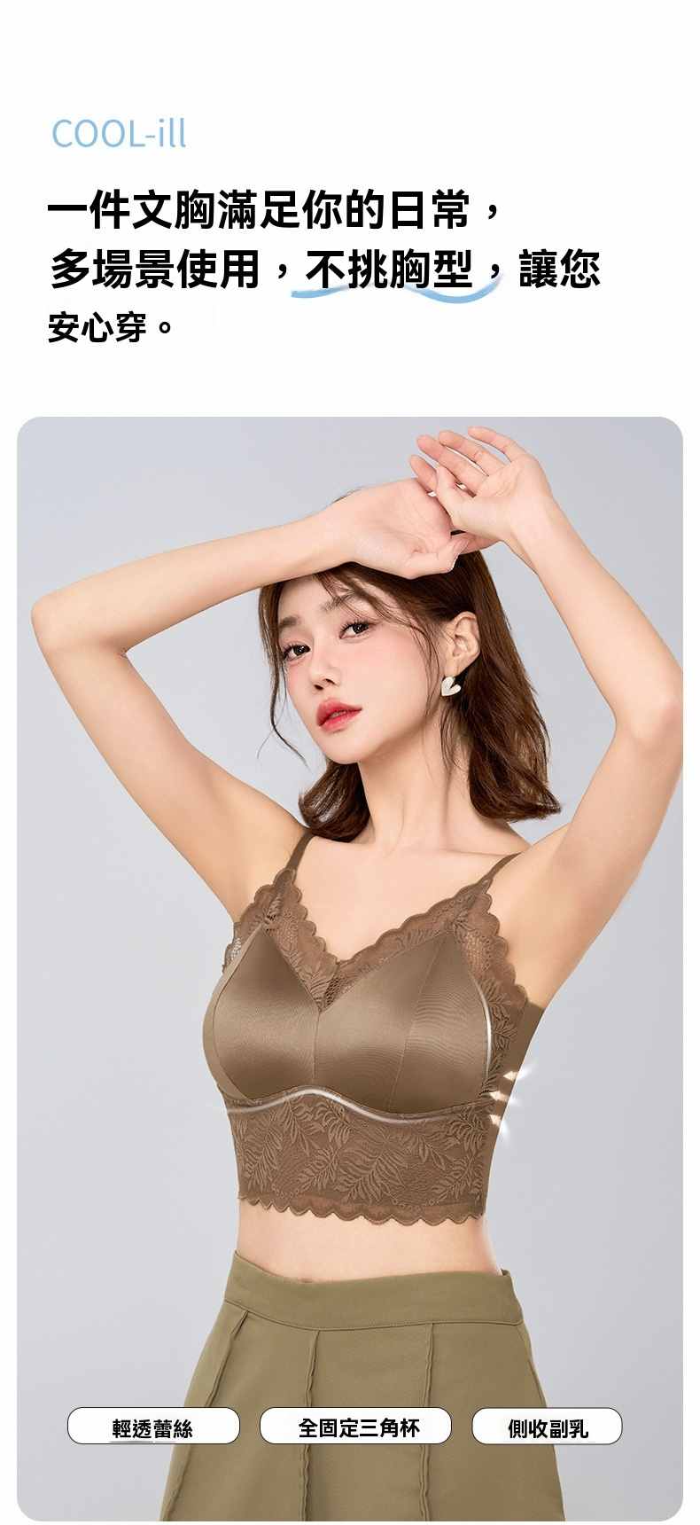 一體式無鋼圈固定杯美背文胸【白色】+【奶咖色】+【棕色】各一件(到手3件,每件均價333元!)