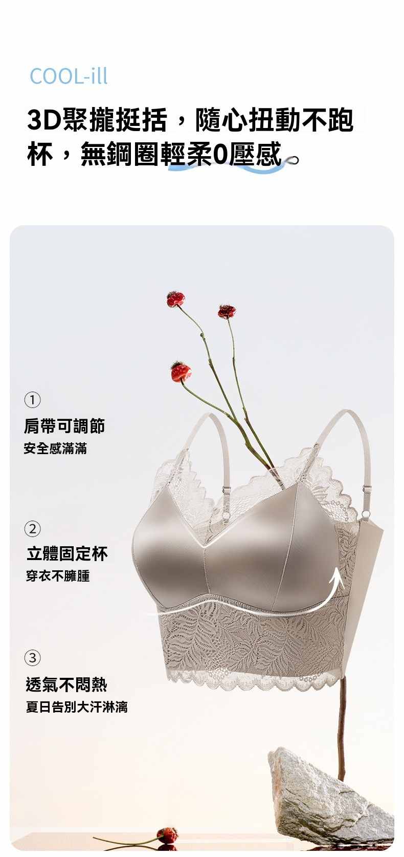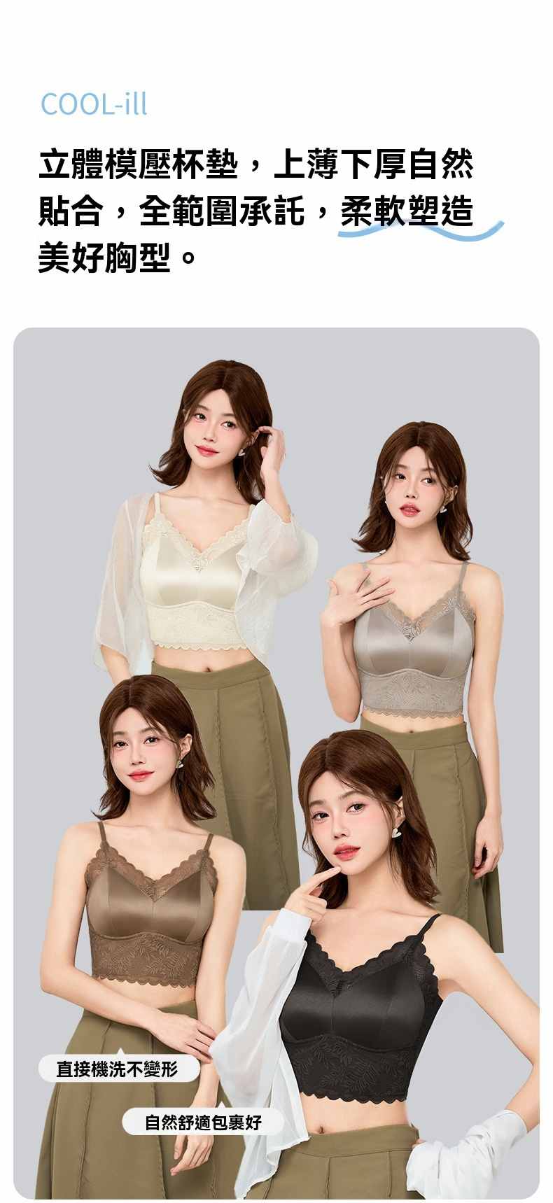 一體式無鋼圈固定杯美背文胸【白色】+【奶咖色】+【黑色】各一件(到手3件,每件均價333元!)