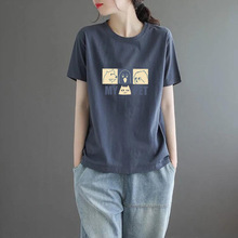 【全台免運!限時特惠買一送一!】刺繡棉麻文藝百搭休閒透氣短袖
