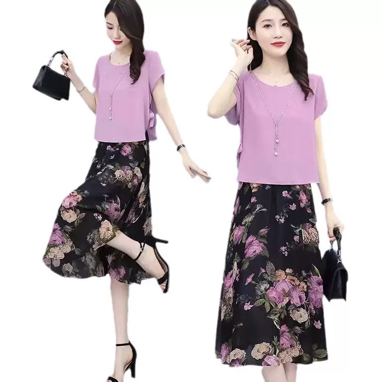 【洋氣減齡!限時特惠買一送一!】雪紡假兩件印花連衣裙