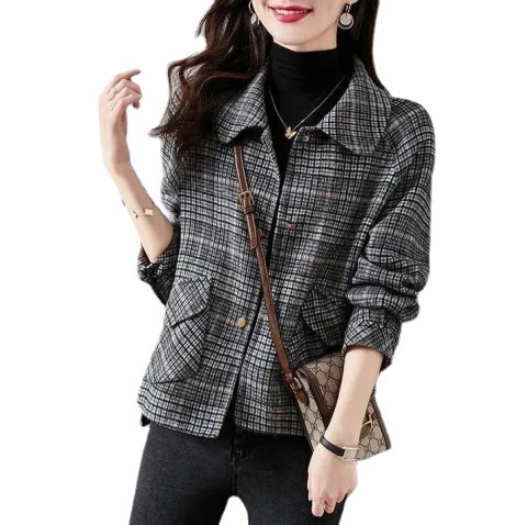 【好評如潮!全台免運!】小香風短款格子粗花毛呢外套