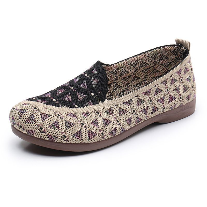 【典雅舒適!特惠買一送一!】印花鏤空時髦媽媽飛織鞋