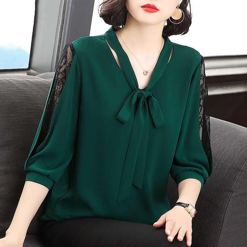【滿足不同體型!限時買一送一!】洋氣新款中年媽媽寬鬆遮肚雪紡衫