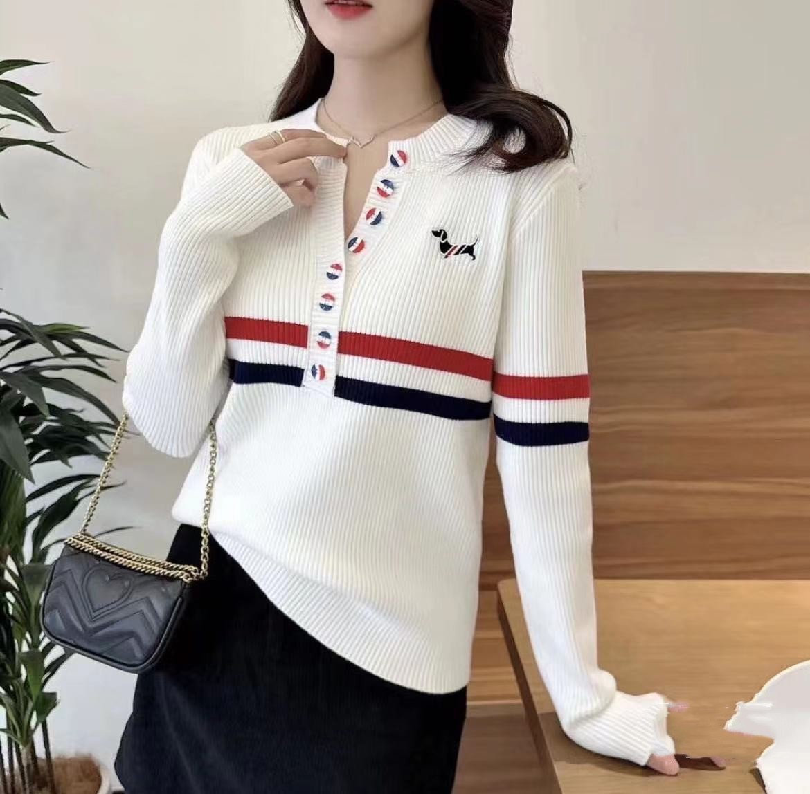【韓版時尚!限時買一送一!】排扣刺繡條紋氣質百搭女士長袖